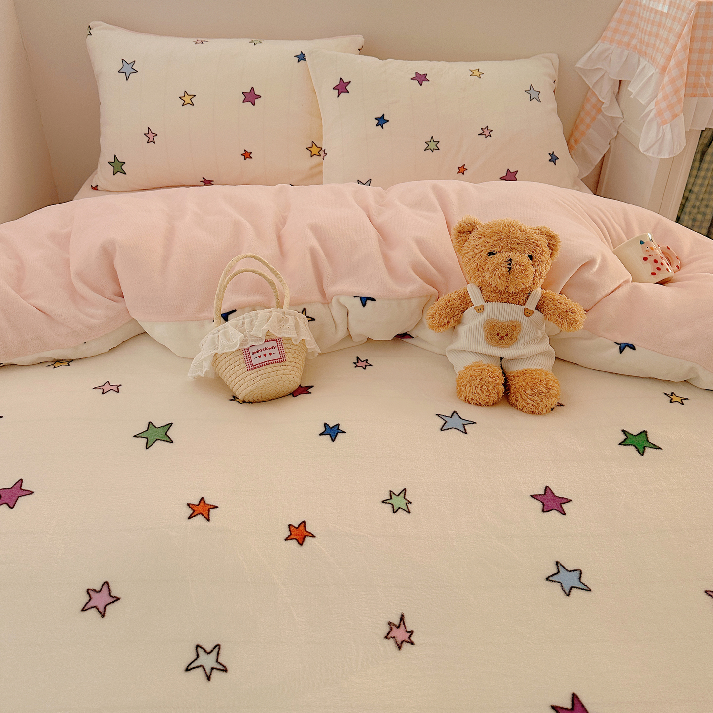 (总)桃喜 2026春夏新款全棉纯棉ins简约系列四件套(会员-3),费尔岛小猫,粉星星,复古费尔岛,灰星星