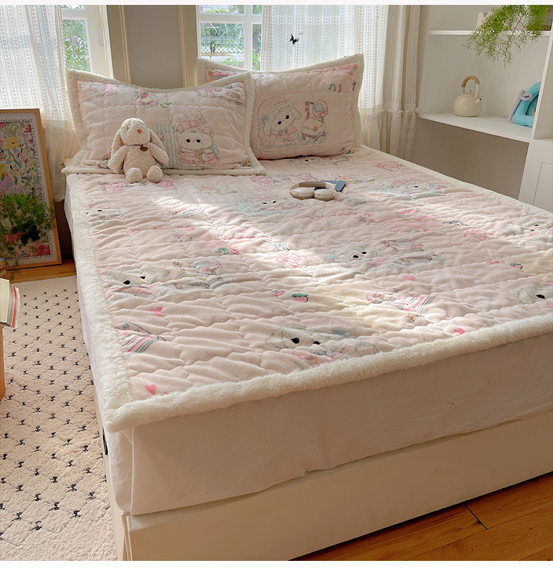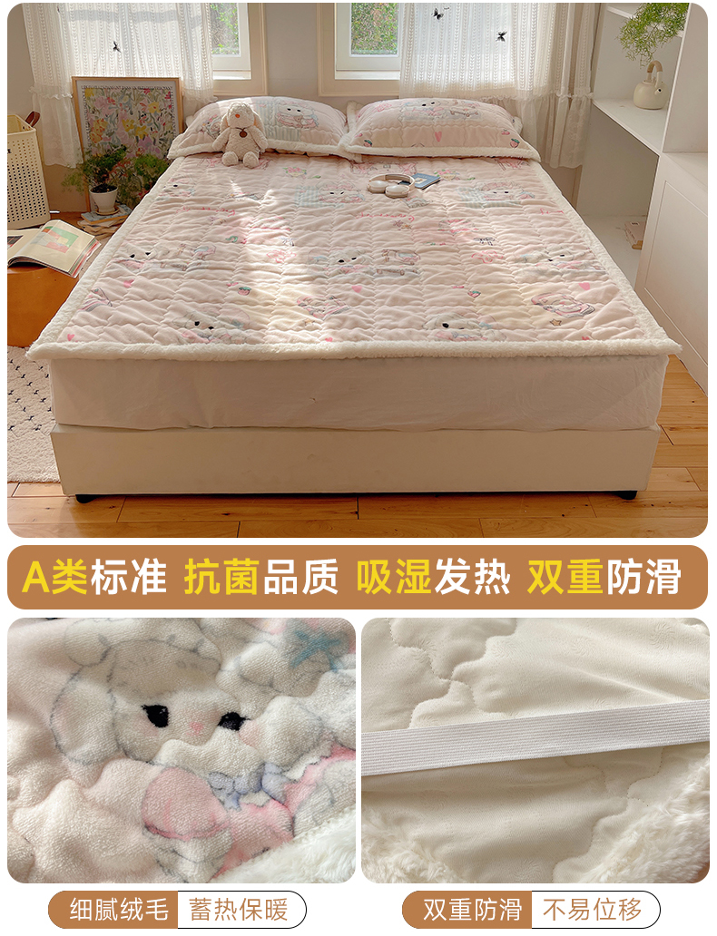 红嘴企鹅 2025新款高克重牛奶绒印花床护垫床褥 生日Party