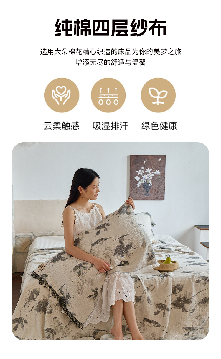 (总)沐瑟家纺 2025新款亲肤柔软全棉纱布中国风盖毯毯子,百花集,翠影鸟-蓝色,花想容,花鸟韵,蝶语-绿,蝶语-淡粉,花蝶-米,比翼鸟,墨葵,绮梦花
