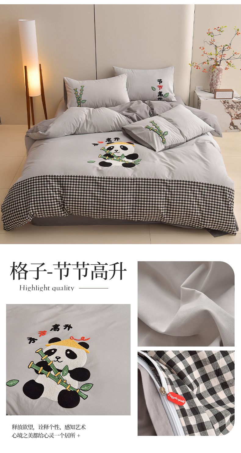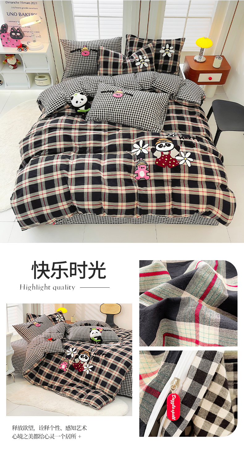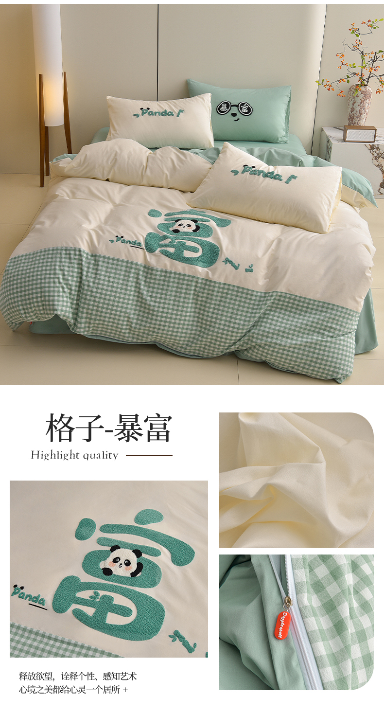 (总)炫拼家纺 2026新款A类全棉色织华夫格卡通毛巾绣B版40支纯棉水洗棉四件套-乐邦系列,乐邦-休闲熊猫,乐邦-汉堡狗,乐邦-梦想猫,乐邦-米乐兔,乐邦-苹果熊,乐邦-甜筒象