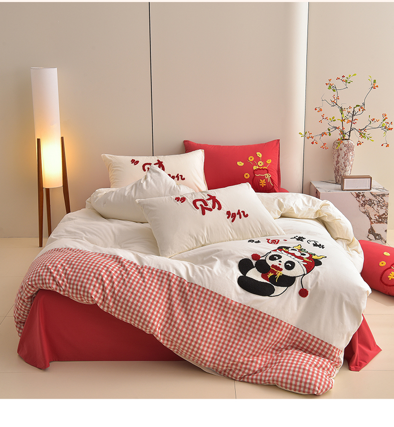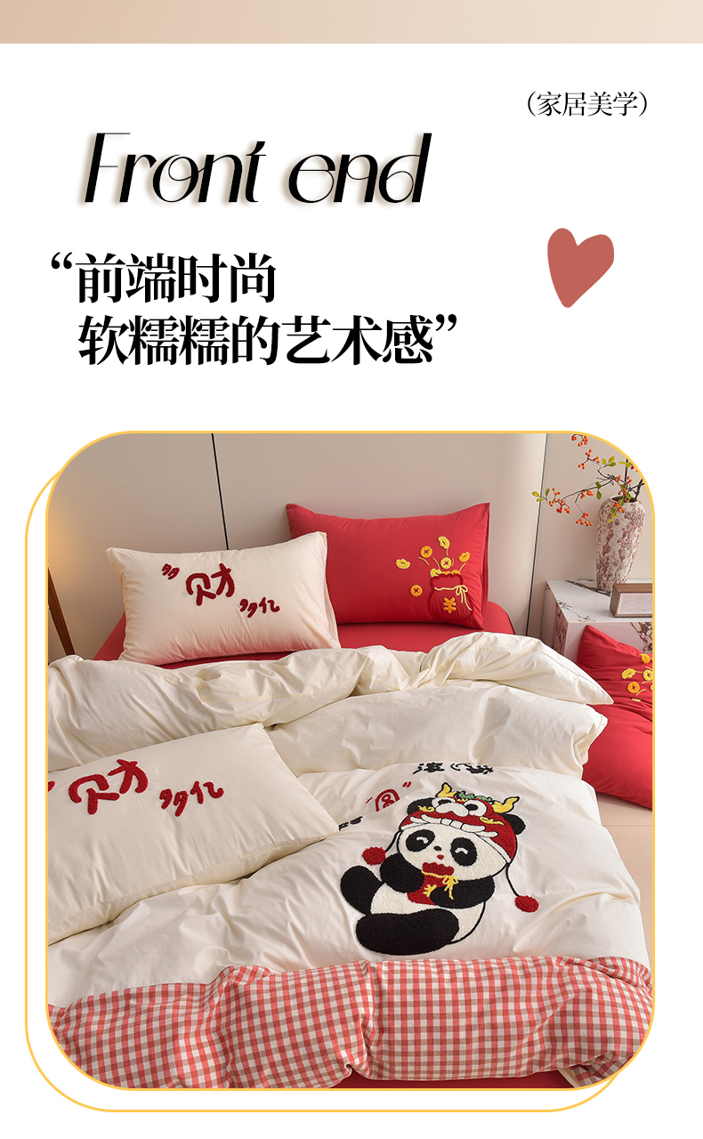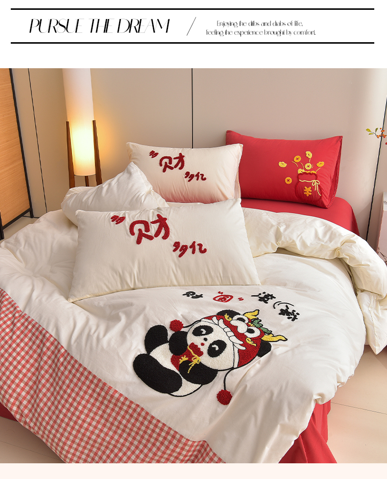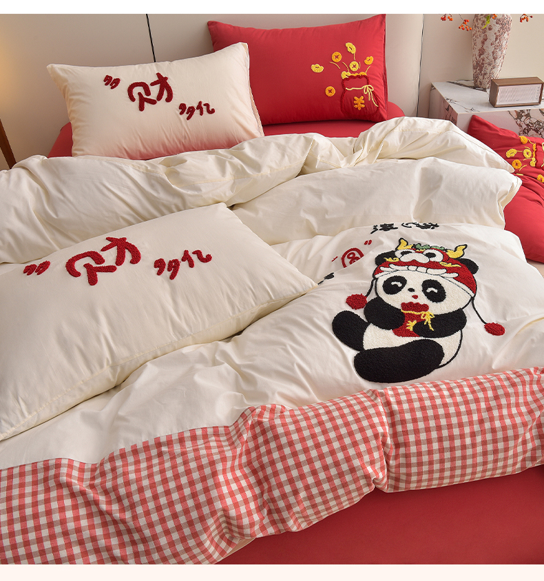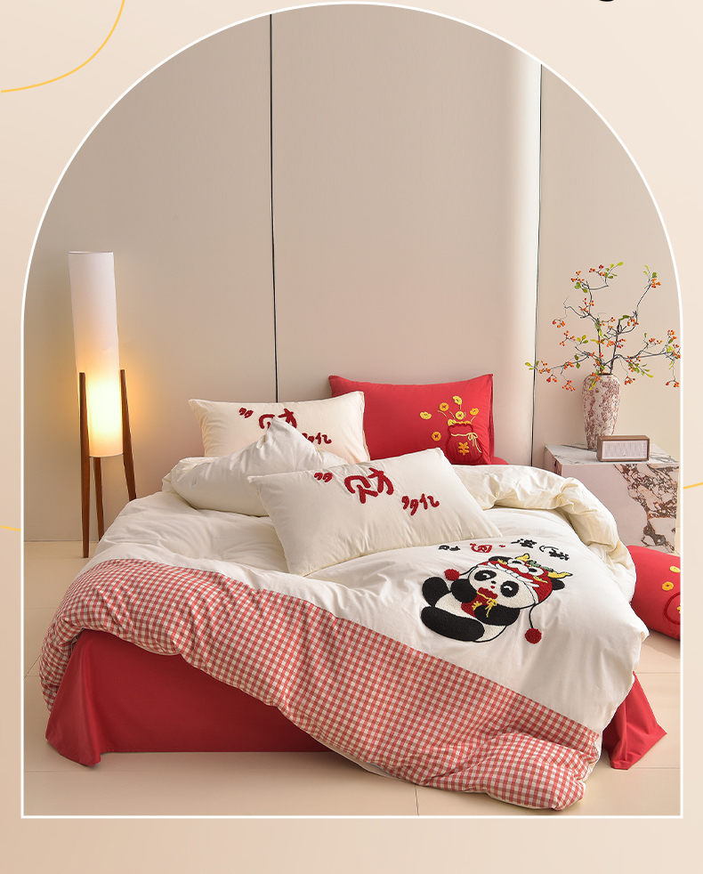 (总)炫拼家纺 2026新款A类全棉色织华夫格卡通毛巾绣B版40支纯棉水洗棉四件套-乐邦系列,乐邦-休闲熊猫,乐邦-汉堡狗,乐邦-梦想猫,乐邦-米乐兔,乐邦-苹果熊,乐邦-甜筒象