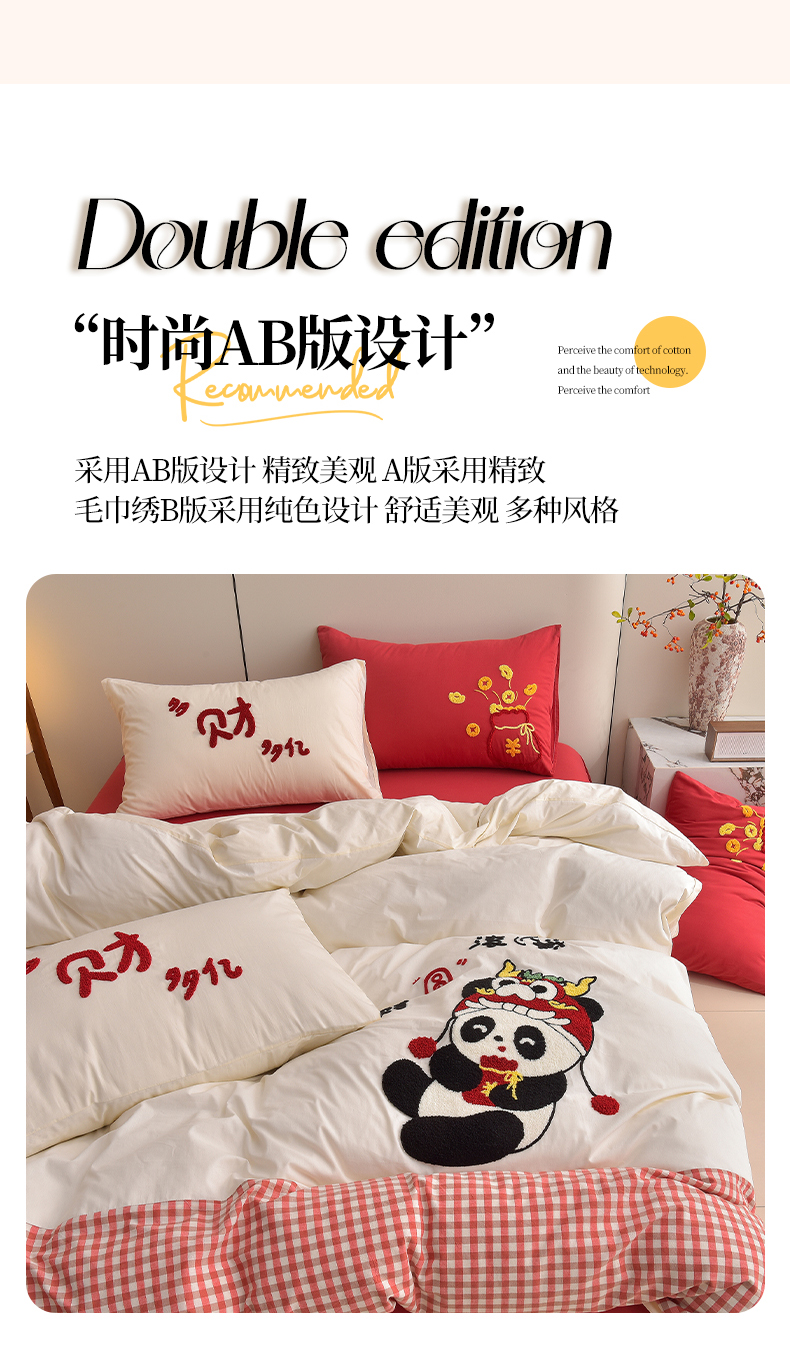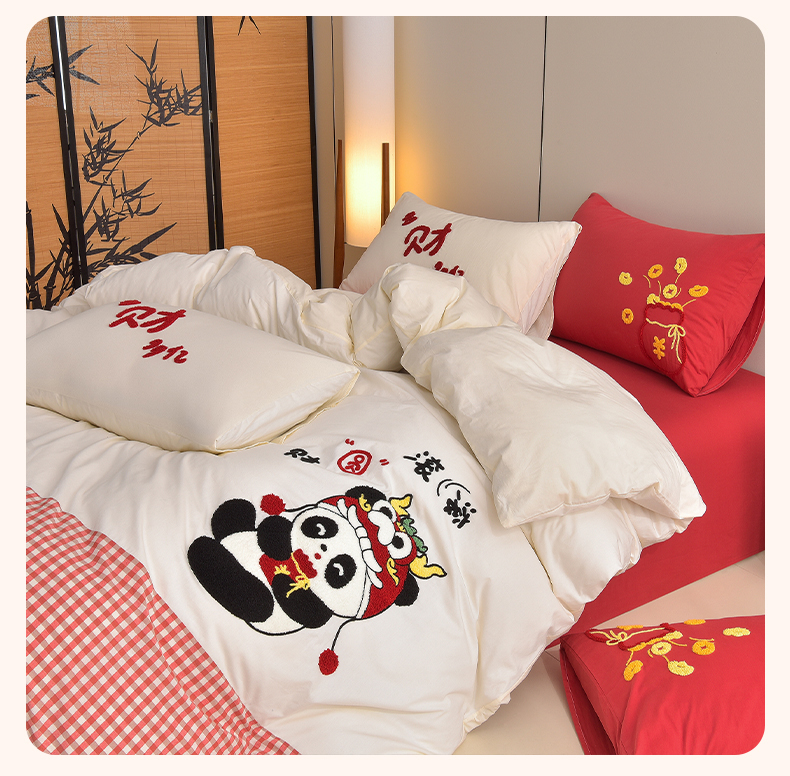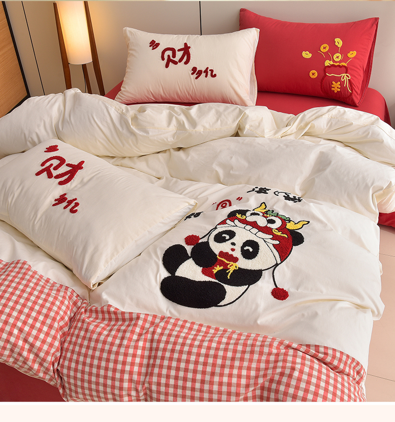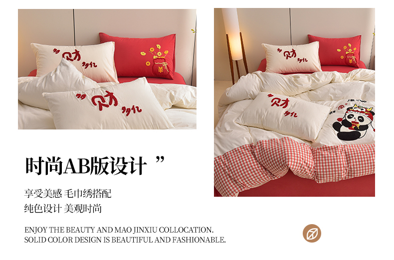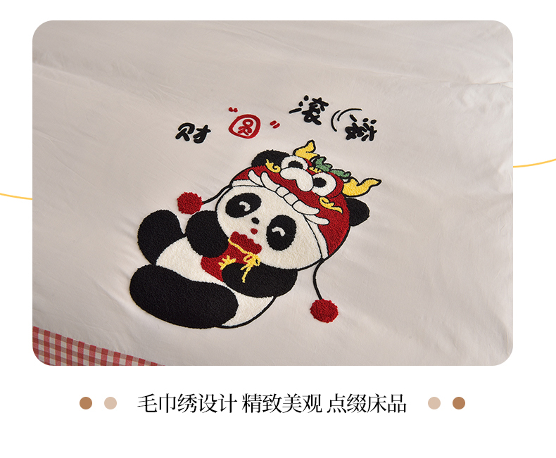 商品名称:炫拼家纺 2026新款A类全棉40支水洗棉毛巾绣四件套-卡通多巴胺 财源滚滚