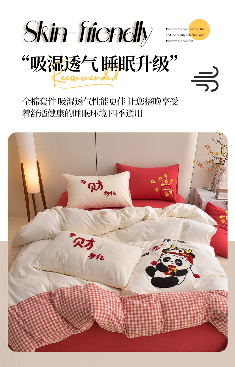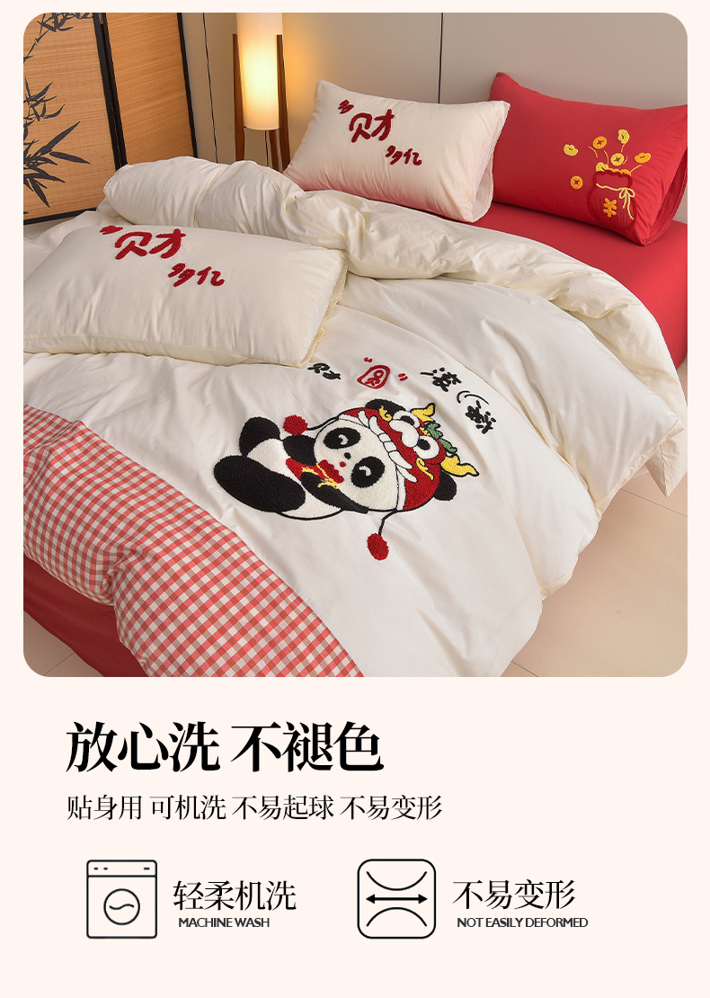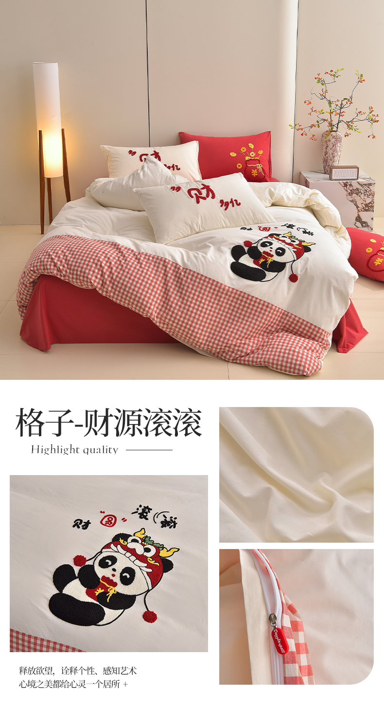 商品名称:炫拼家纺 2026新款A类全棉40支水洗棉毛巾绣四件套-卡通多巴胺 财源滚滚