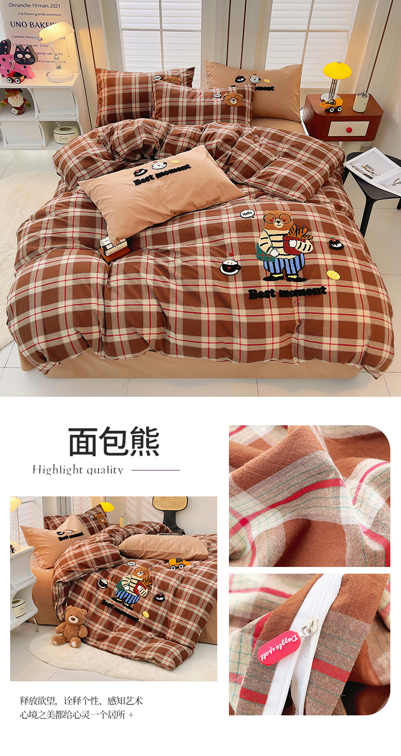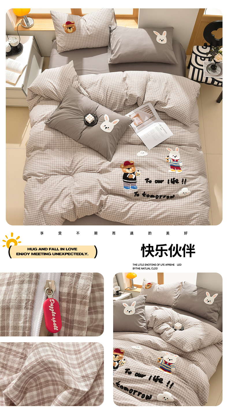 (总)炫拼家纺 2026新款A类棉麻刺绣卡通贝壳边四件套-布鲁系列,布鲁-小猫,布鲁-小熊,布鲁-小狗,布鲁-小马