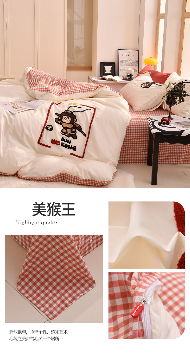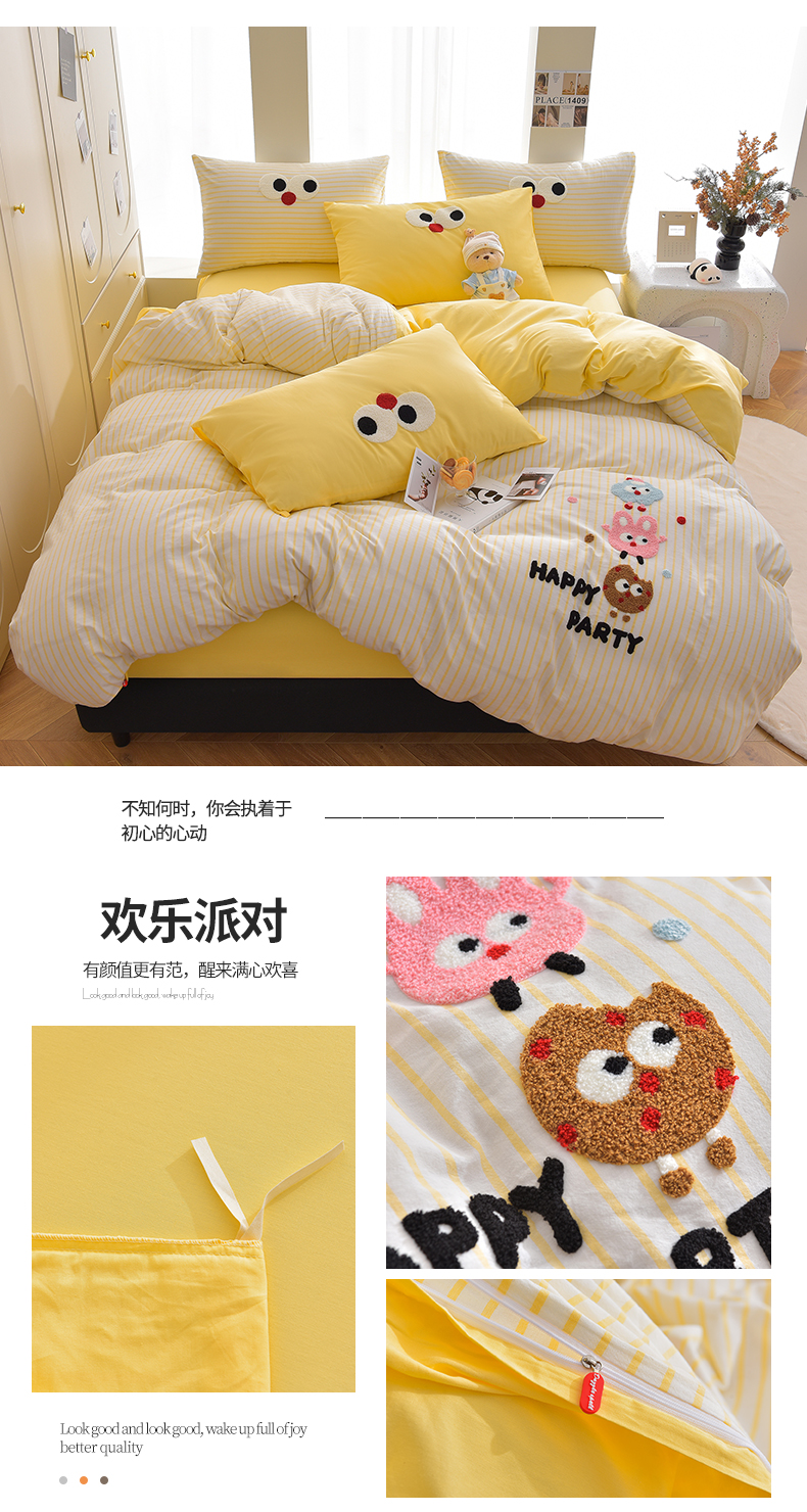 (总)炫拼家纺 2026新款A类全棉40支水洗棉毛巾绣四件套-卡通多巴胺,面包熊,快乐时光,欢乐派对,酷仔小树,快乐伙伴,潦草小狗,美猴王,惬意时光,小黑熊,一起嗨,No-1