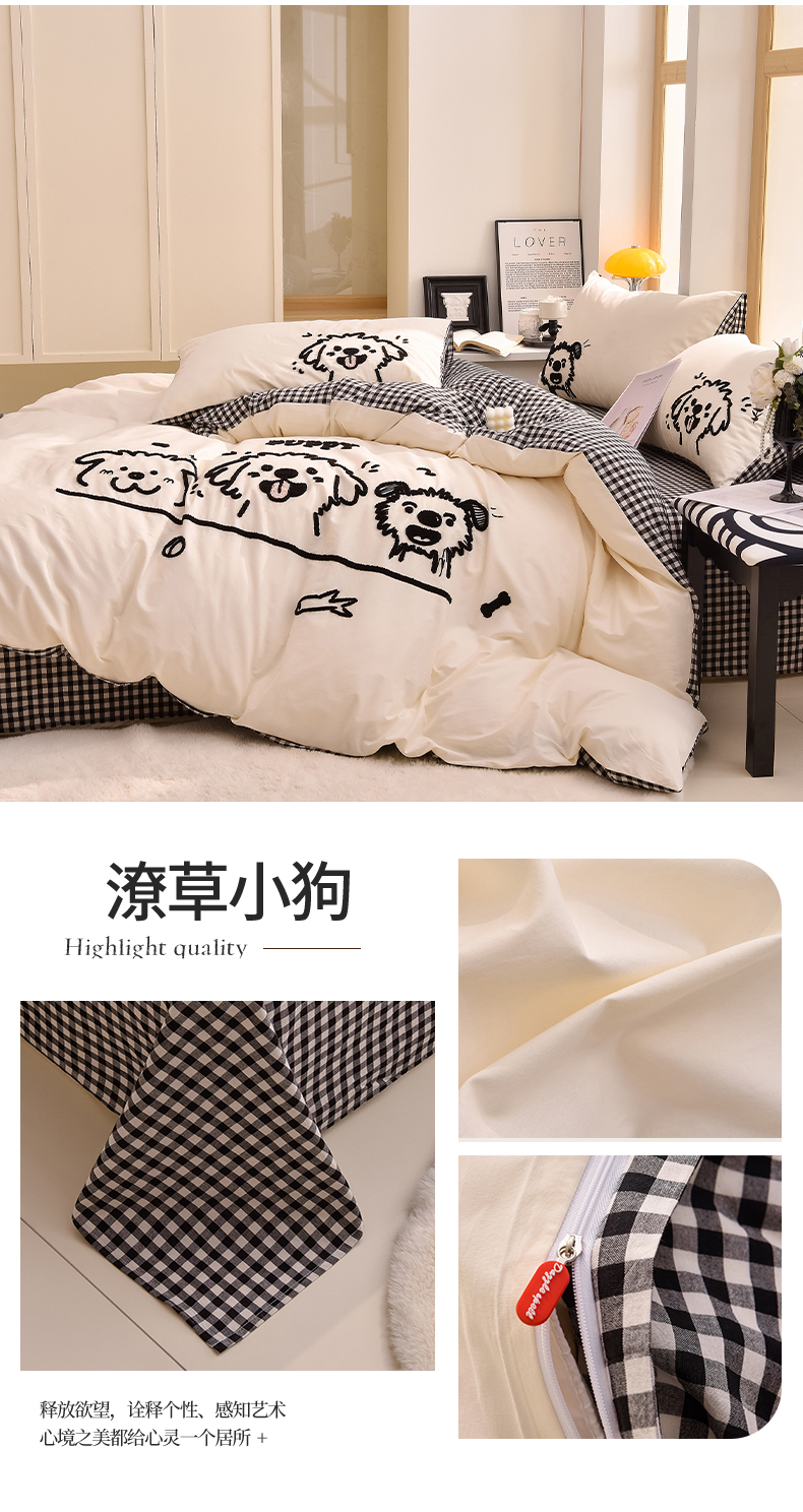 (总)炫拼家纺 2026春夏新款A类全棉纯棉40支水洗棉卡通贴布绣刺绣纯棉四件套-卡哇系列,卡哇一爵士,卡哇一可可,卡哇一甜心,卡哇一汪星,卡哇一悠咪