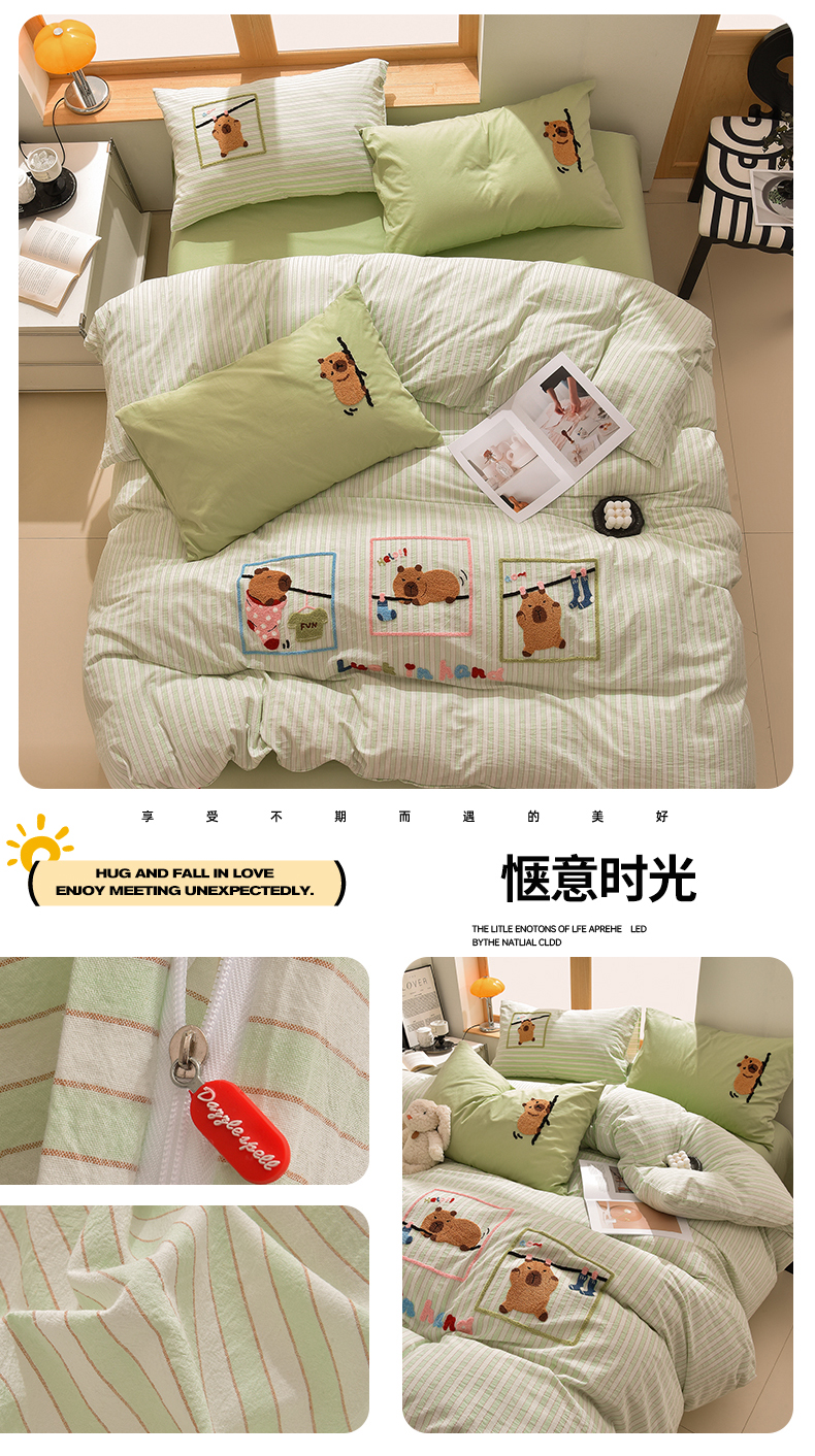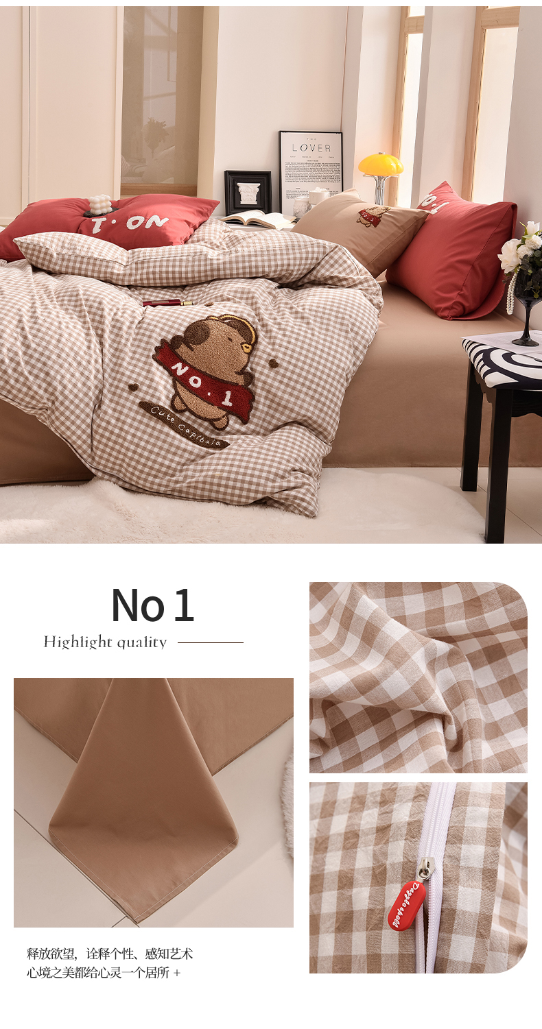 (总)炫拼家纺 2026新款卡通毛巾绣A类全棉40支水洗棉贴布绣平绣纯棉四件套-毛球系列(专票6-7%),毛球-旺旺狗,毛球-卡皮巴拉咖,毛球-小熊黑,毛球-平安喜乐,毛球-快乐小马,毛球-俩小无猜