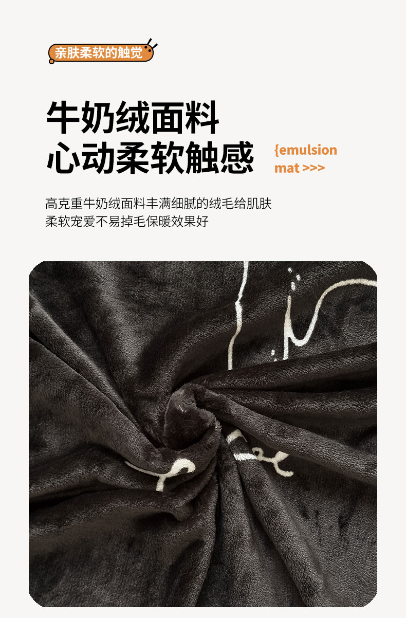 商品名称:宅部落 2025新款牛奶绒印花毛毯毯子300克云貂绒盖毯 酷喵