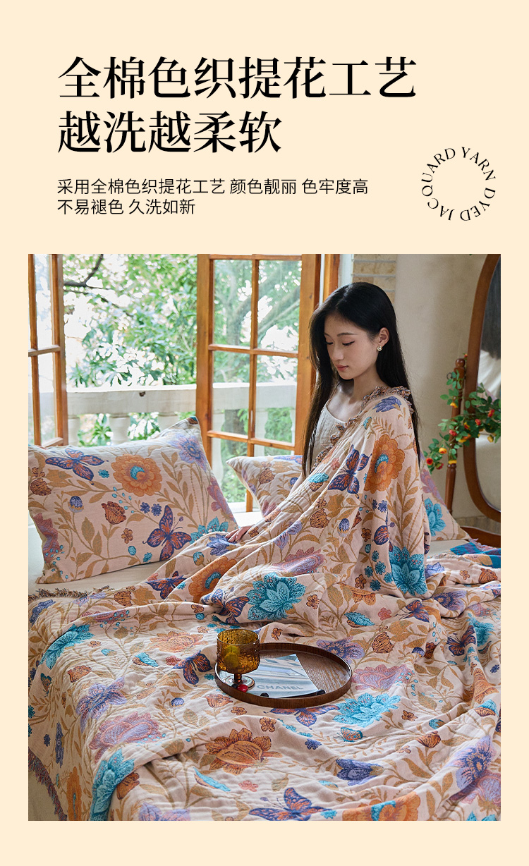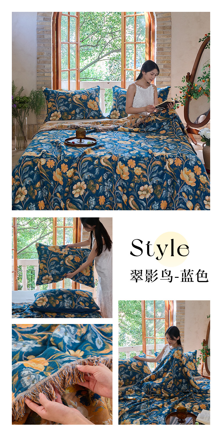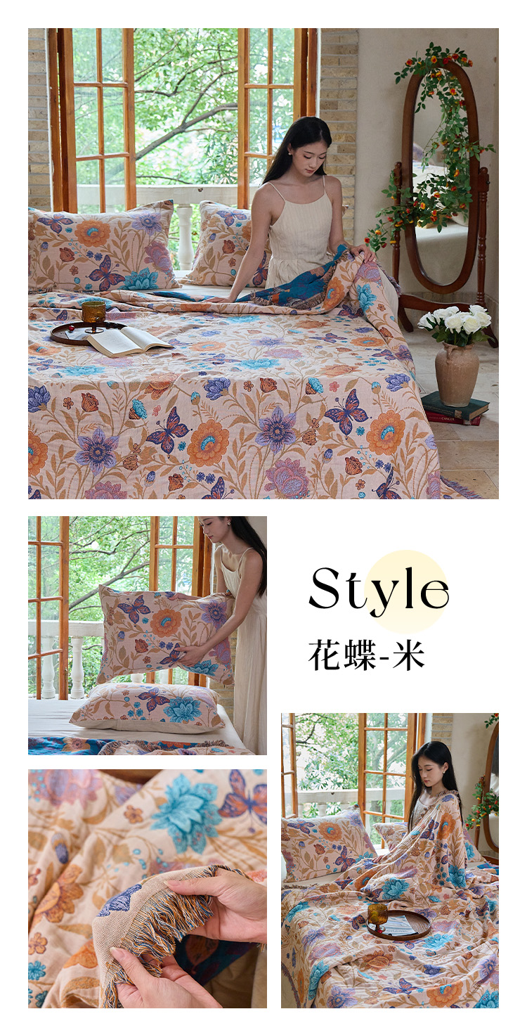(总)沐瑟家纺 2025新款亲肤柔软全棉纱布中国风盖毯毯子,百花集,翠影鸟-蓝色,花想容,花鸟韵,蝶语-绿,蝶语-淡粉,花蝶-米,比翼鸟,墨葵,绮梦花