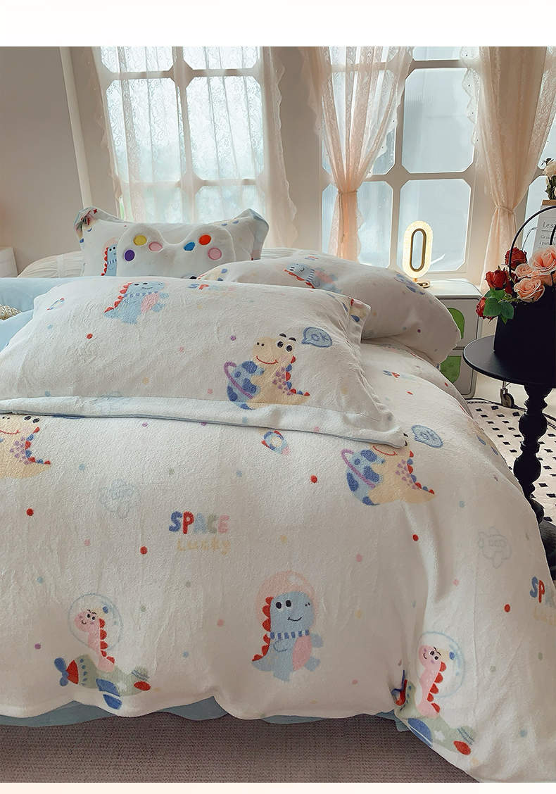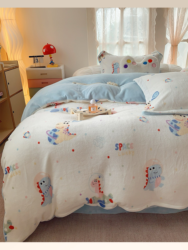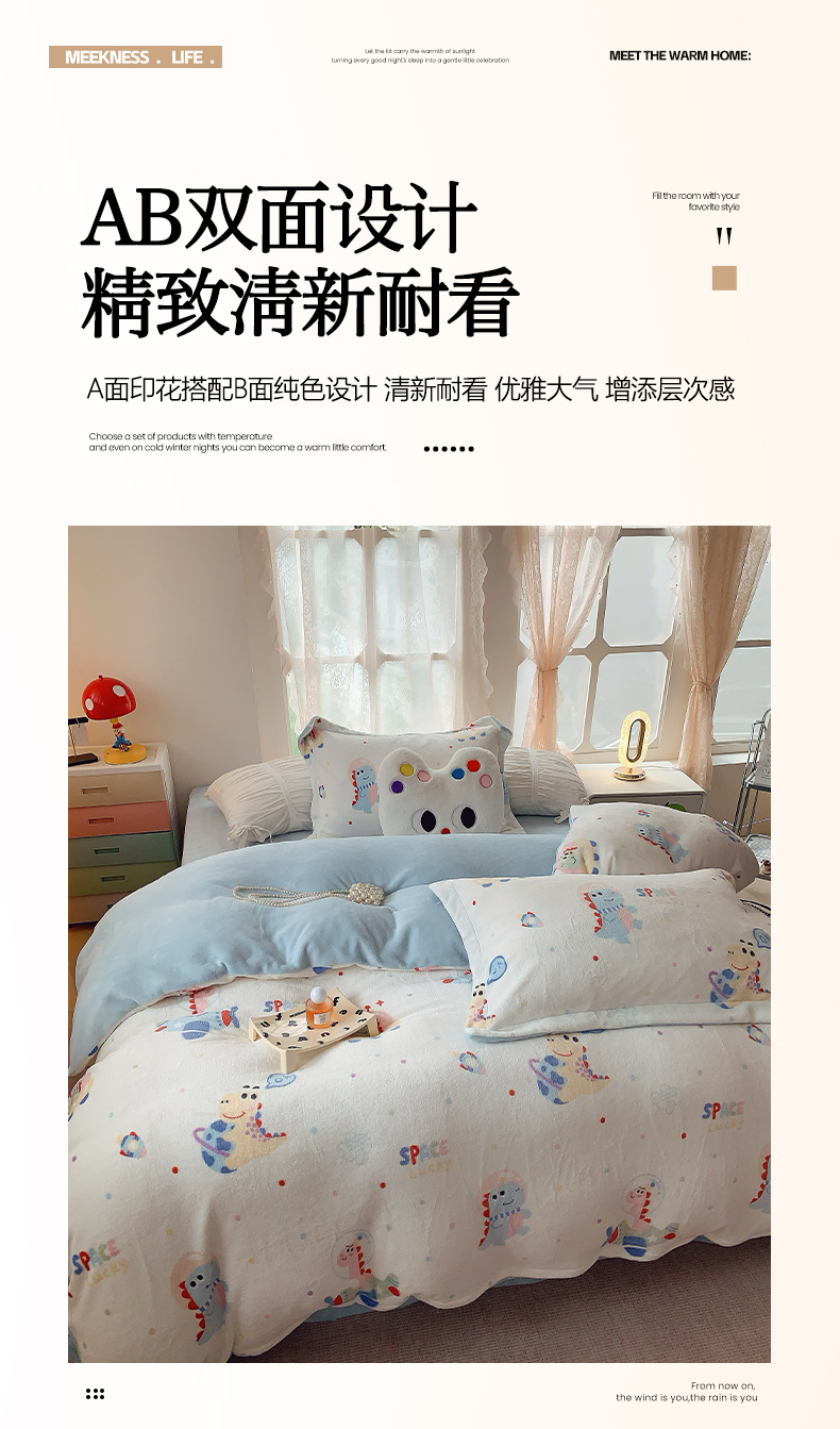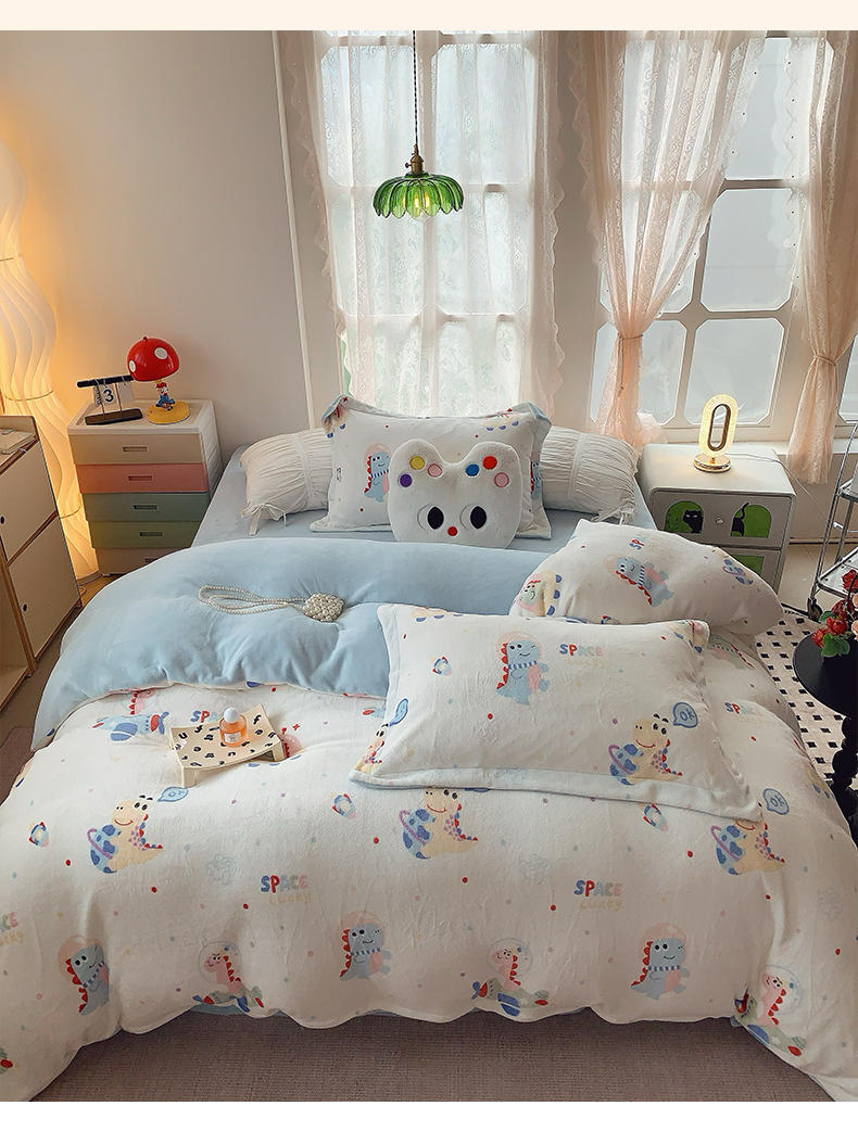 奈萝家纺 2025新款加厚小清新印花牛奶绒三件套四件套 恐龙星球