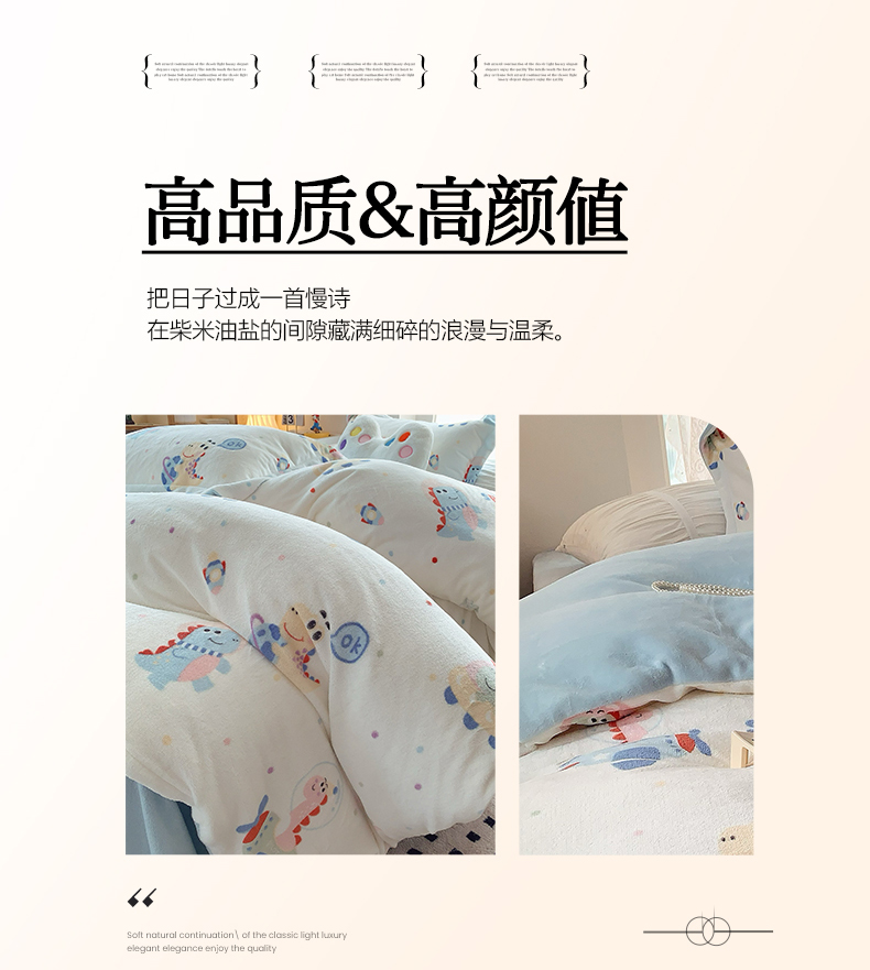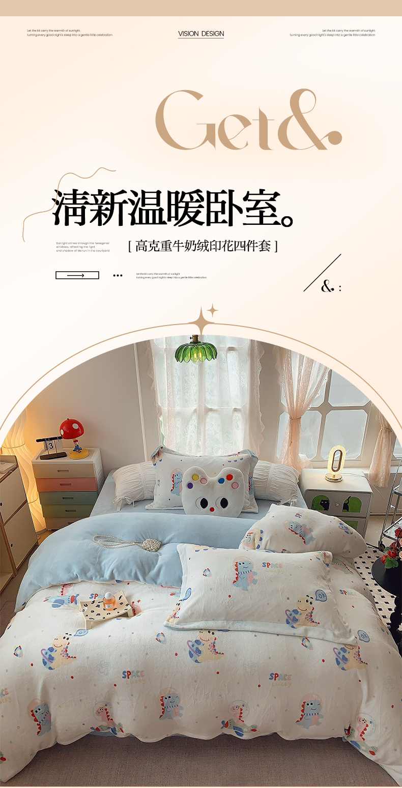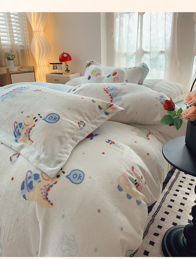 奈萝家纺 2025新款加厚小清新印花牛奶绒三件套四件套 恐龙星球