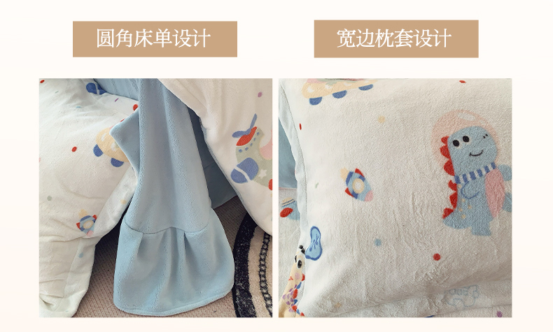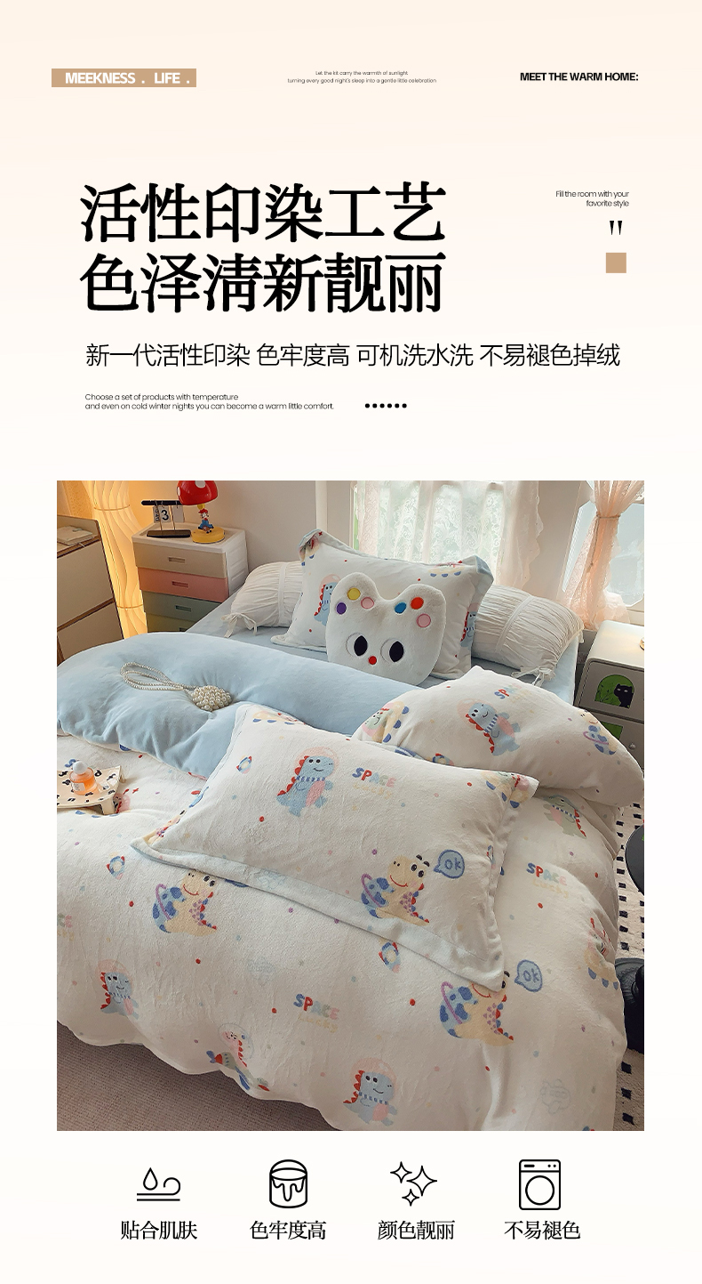 商品名称:奈萝家纺 2025新款加厚小清新印花牛奶绒三件套四件套 恐龙星球