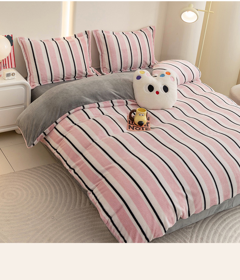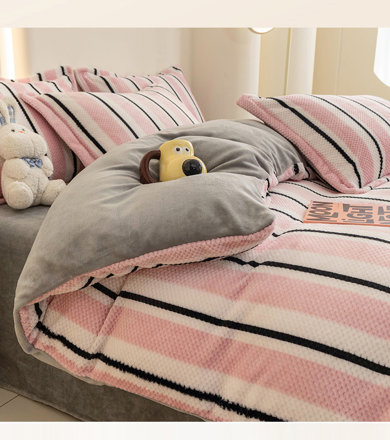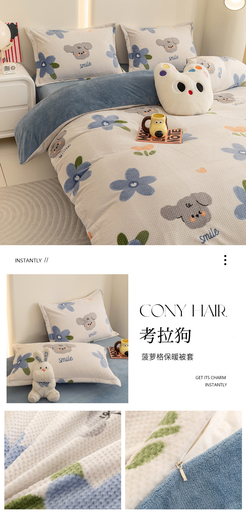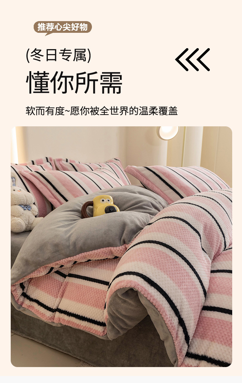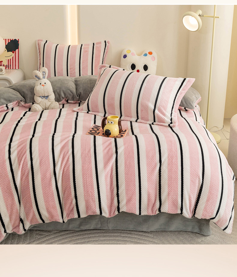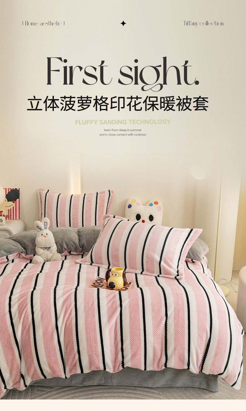 倾慕家纺 2026新款立体菠萝格印花保暖单被套 挪威粉