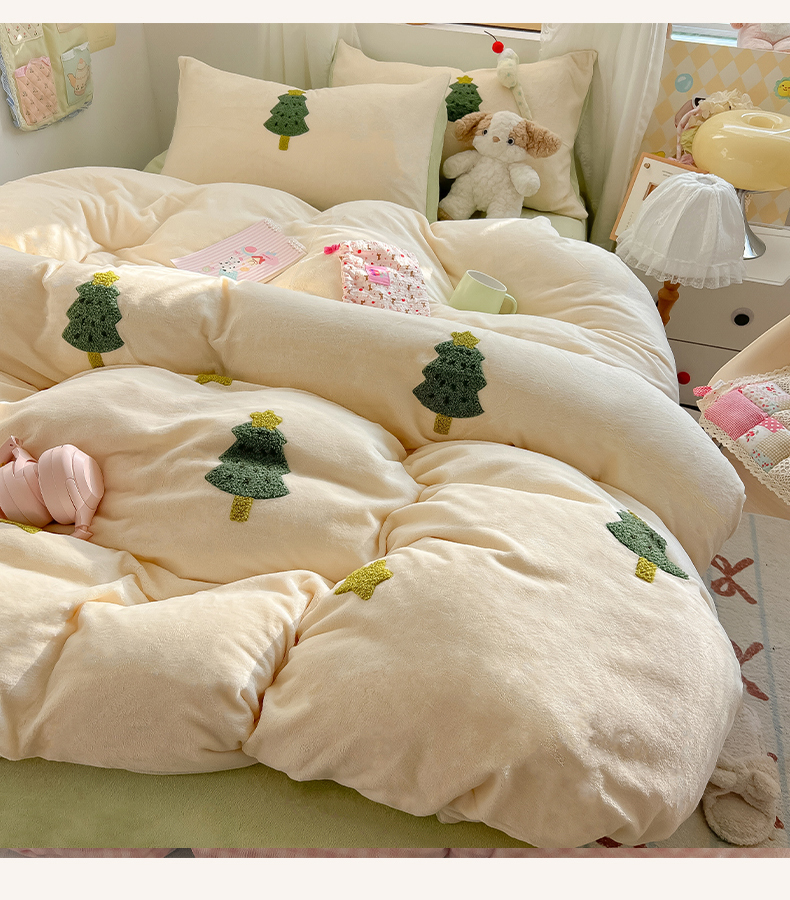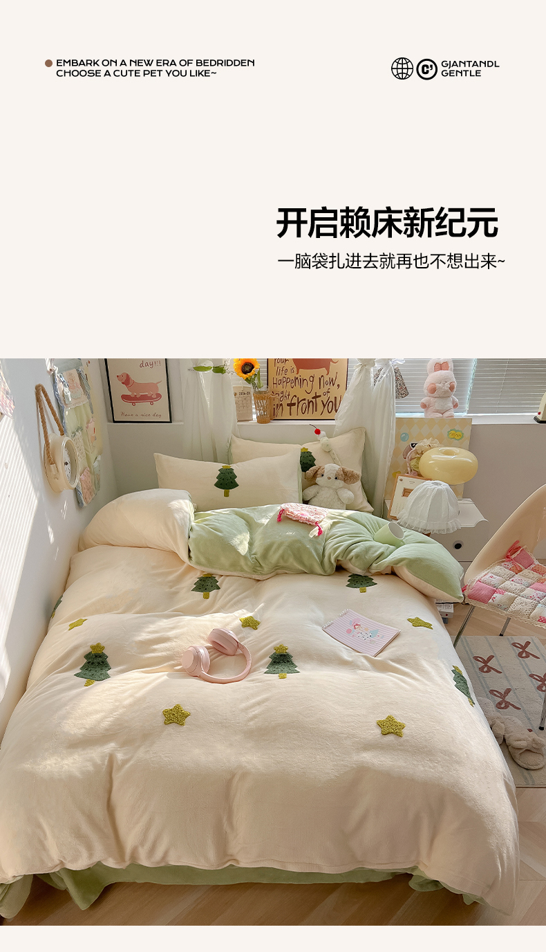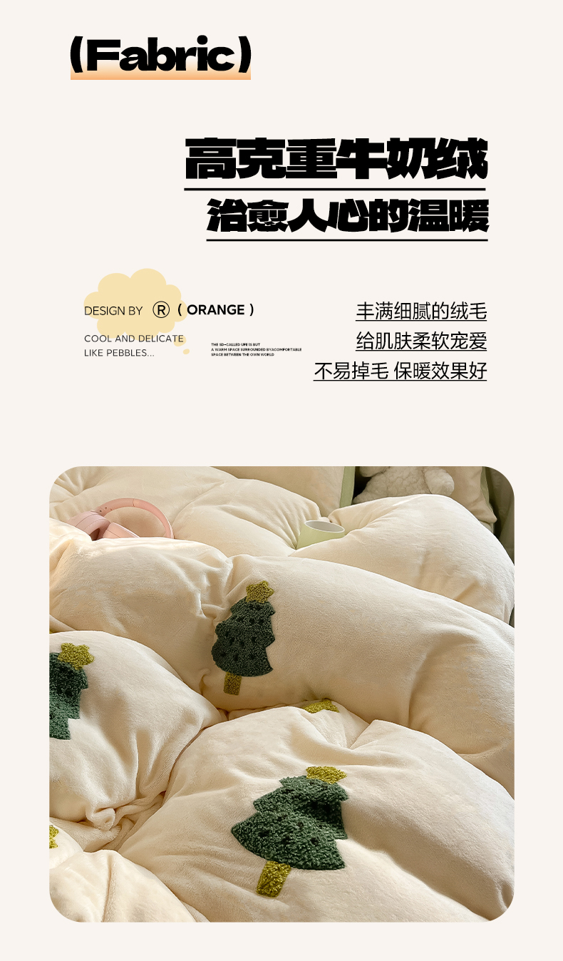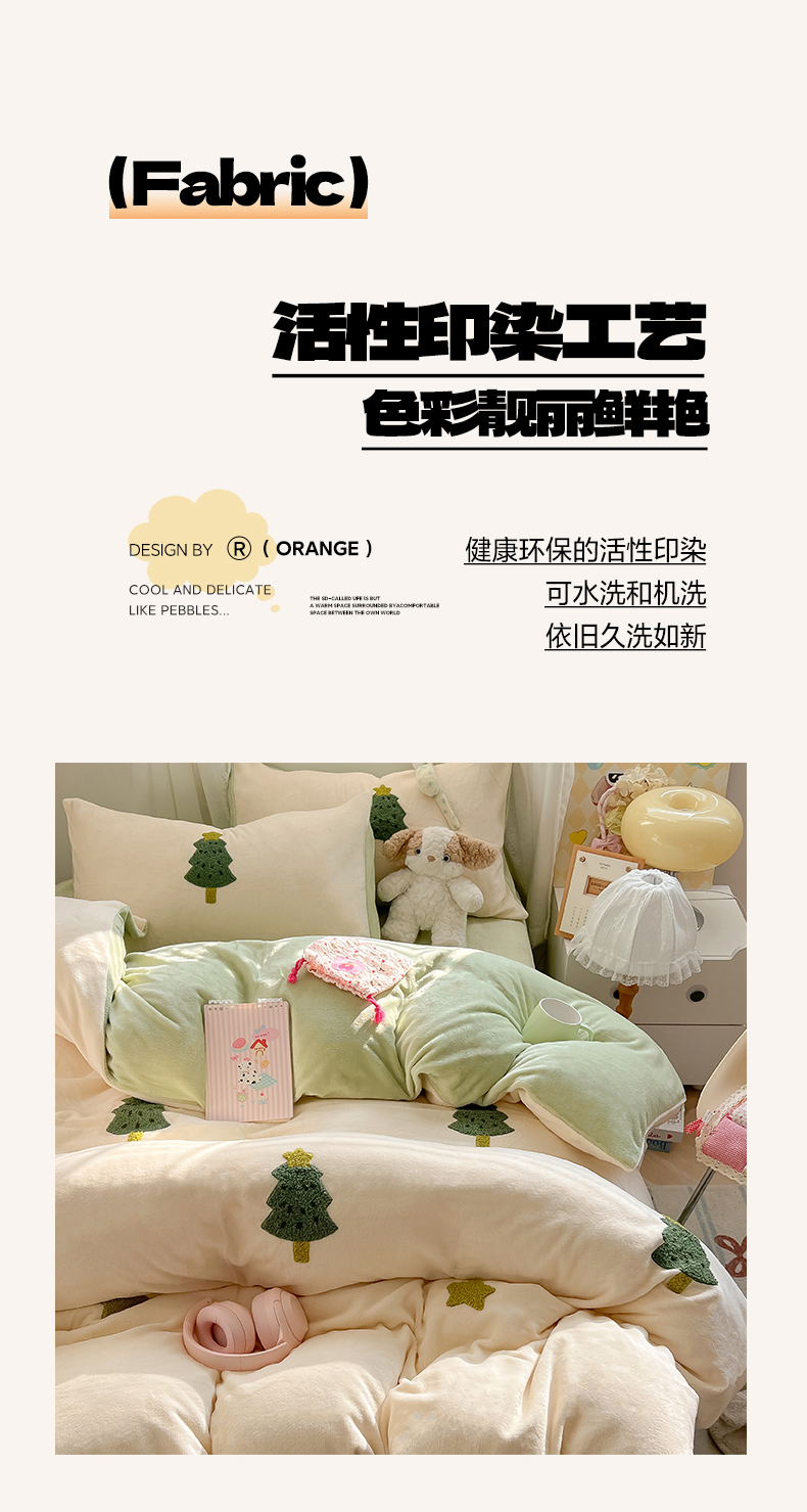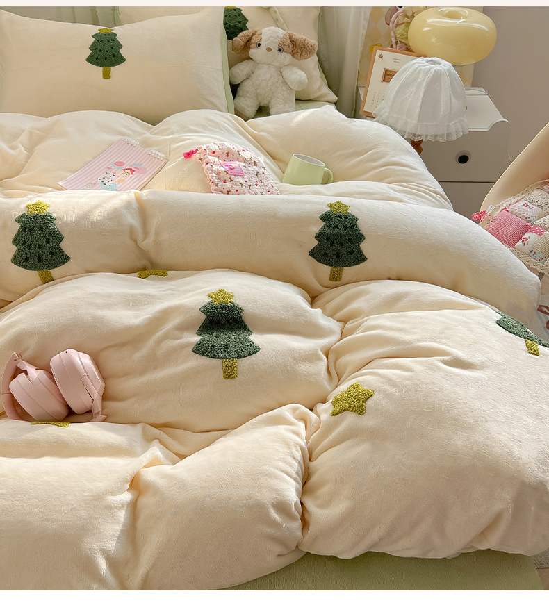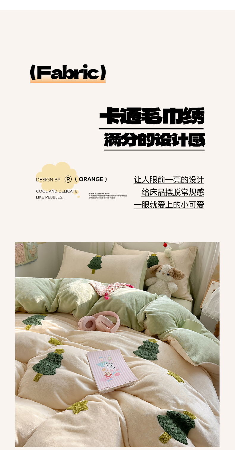 商品名称:韩都家居 2025新款牛奶绒毛巾绣四件套-系列一 圣诞树