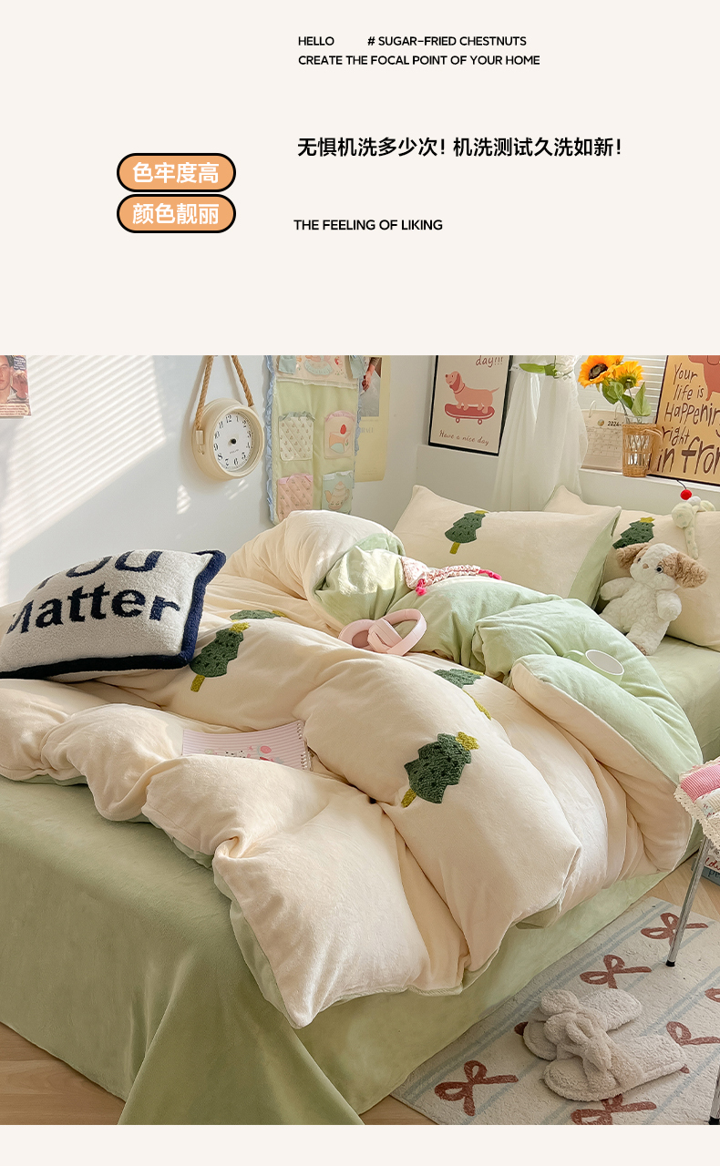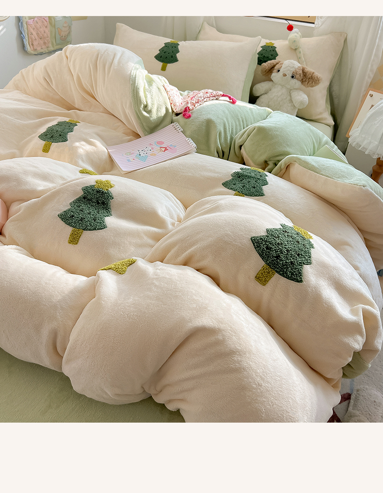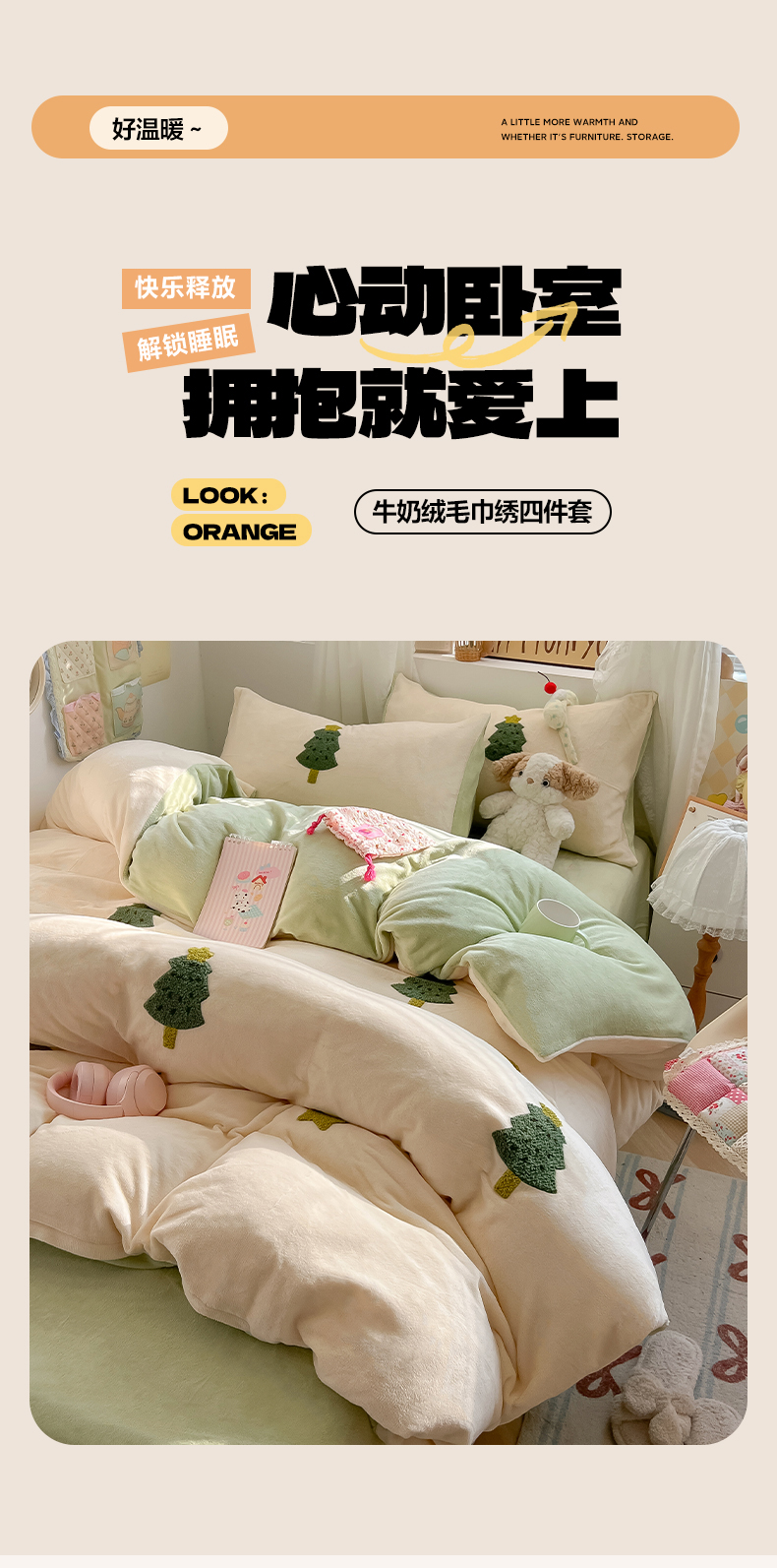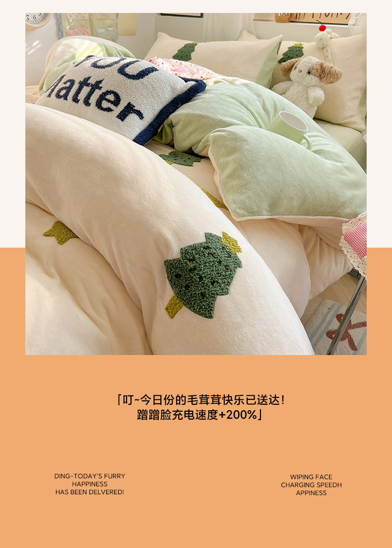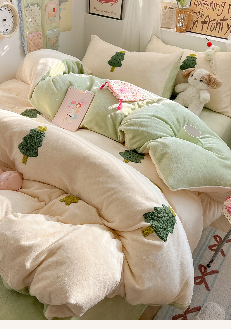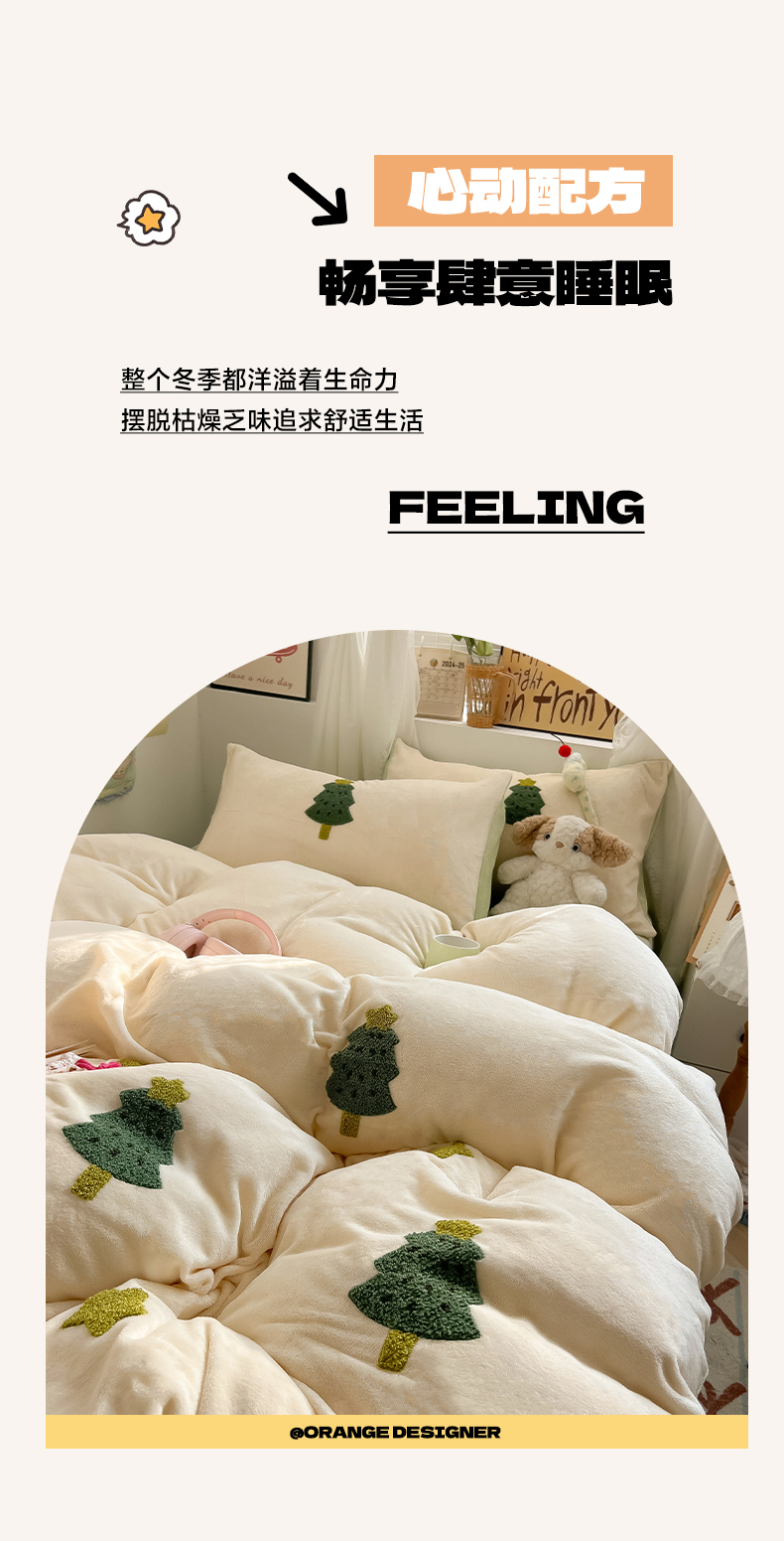 商品名称:韩都家居 2025新款牛奶绒毛巾绣四件套-系列一 圣诞树