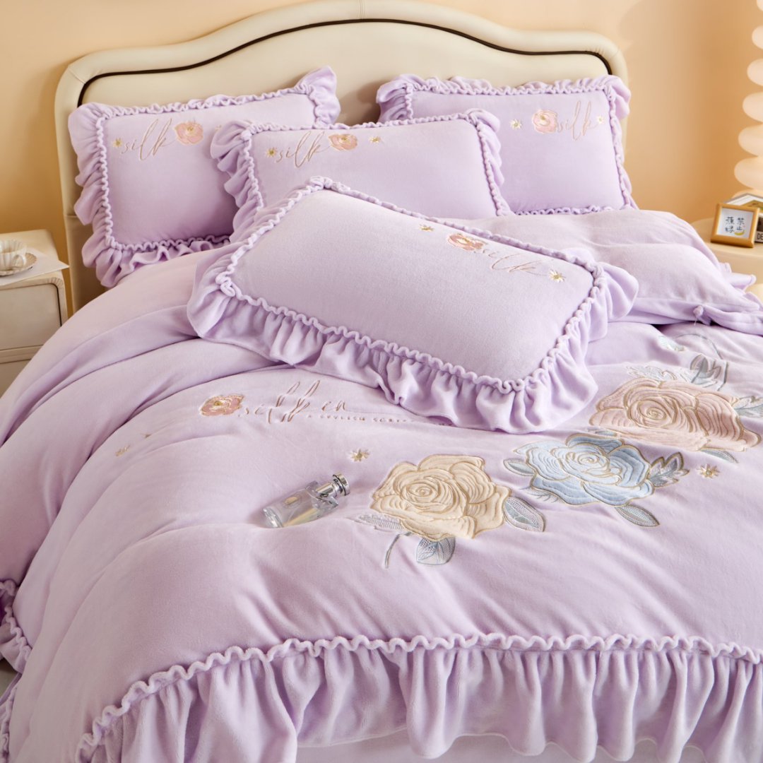 七里香 2025新款牛奶绒刺绣四件套-枝意系列 枝意-紫色