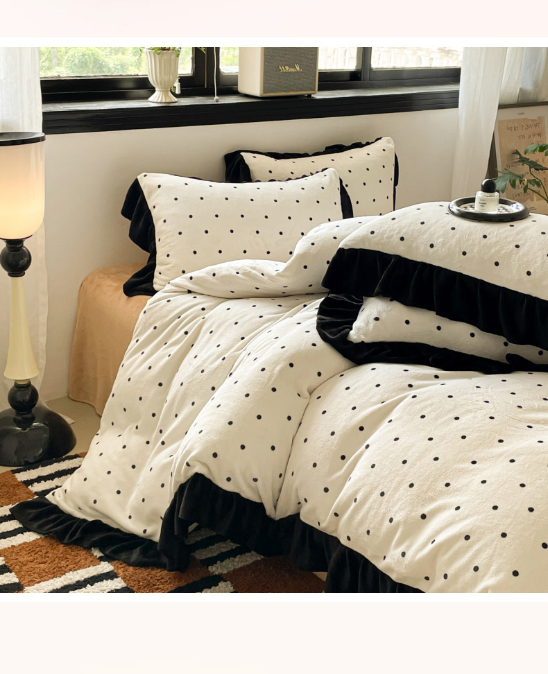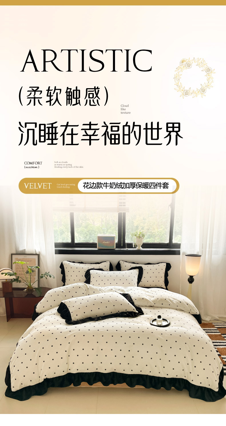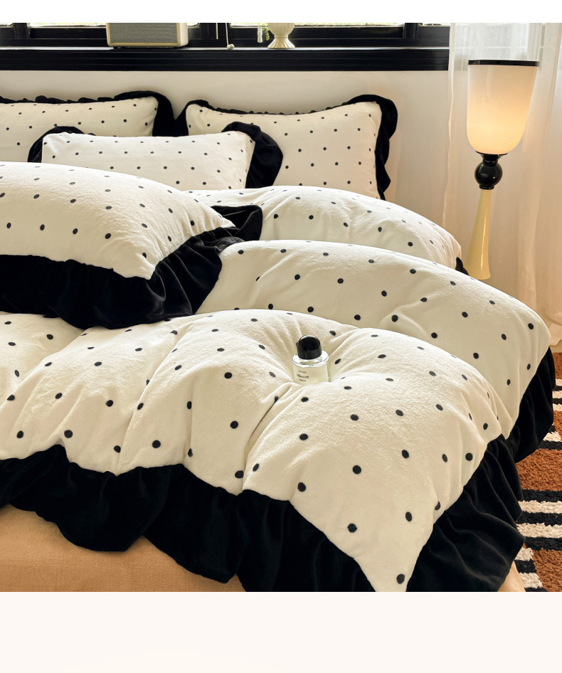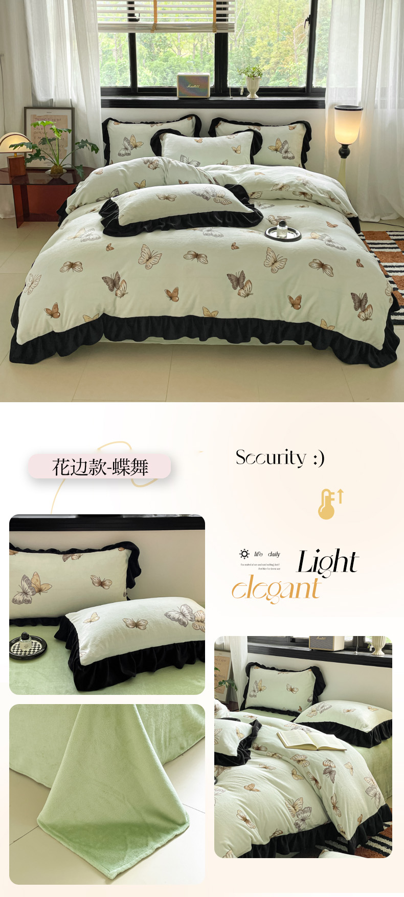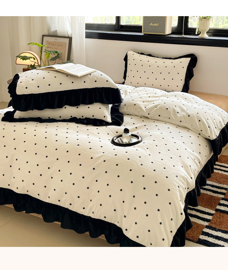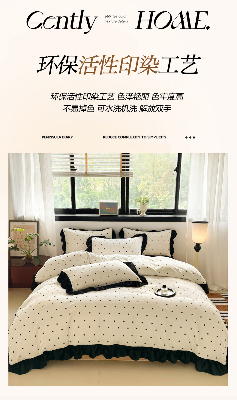 当前位置: 91家纺网 > 商品网购 > 床品套件 > 四件套 > 牛奶绒四件套 > 慕澄家纺 2025新款赫本风牛奶绒花边款四件套 花边款-点点浪漫