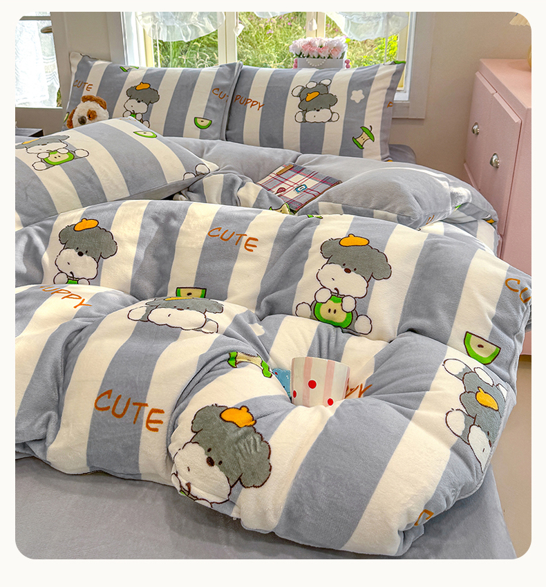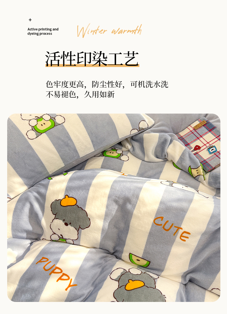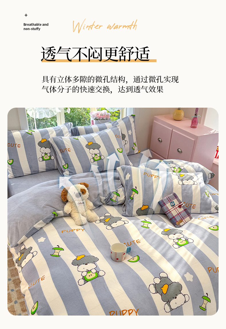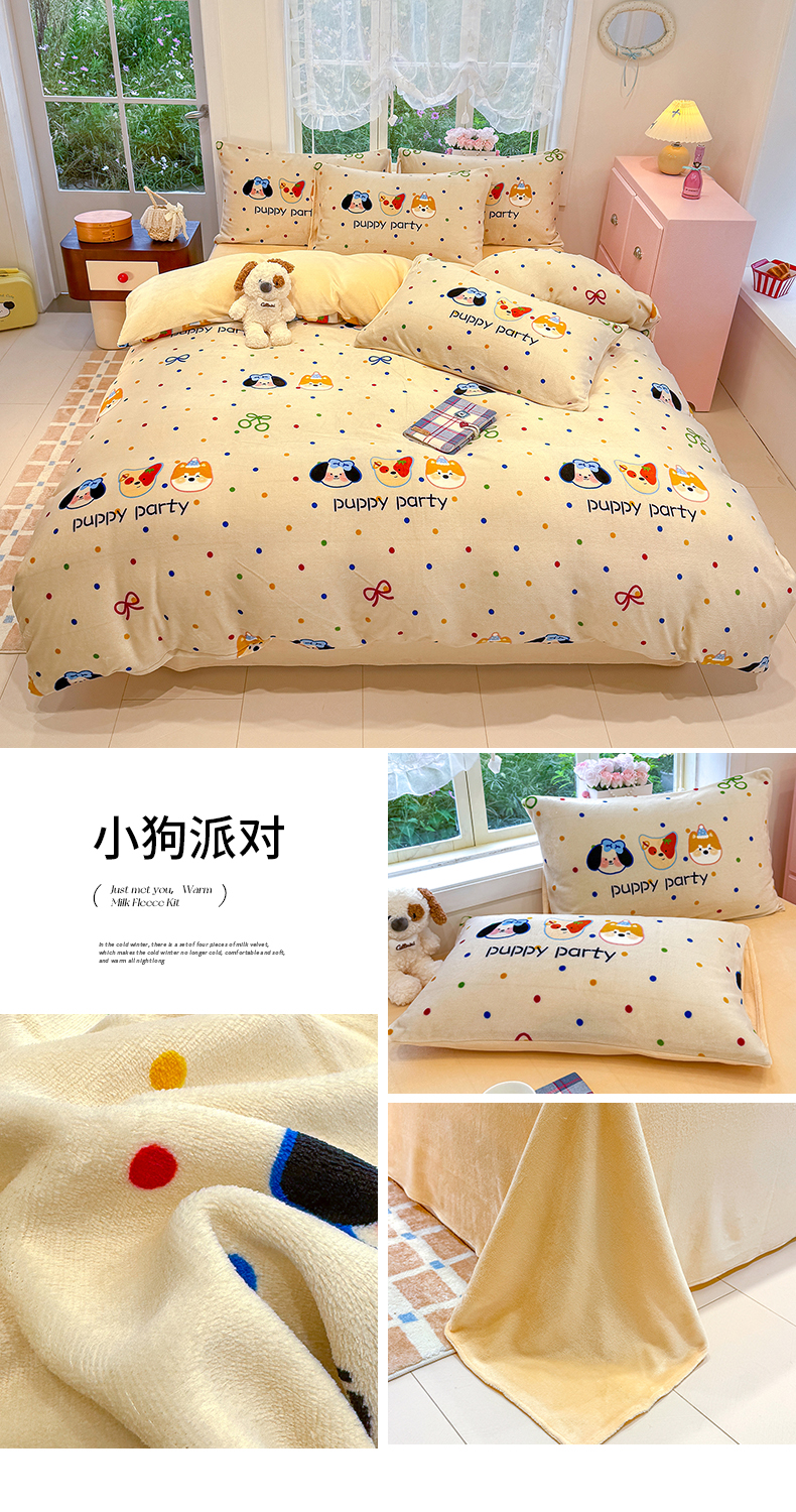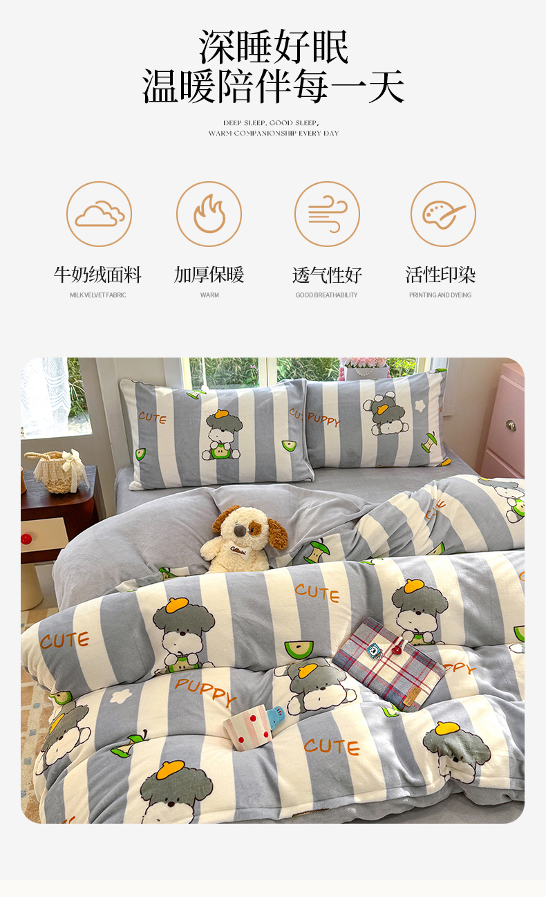 当前位置: 91家纺网 > 商品网购 > 床品套件 > 四件套 > 牛奶绒四件套 > 枋梢家纺 2025新款加厚牛奶绒保暖四件套 苹果小狗