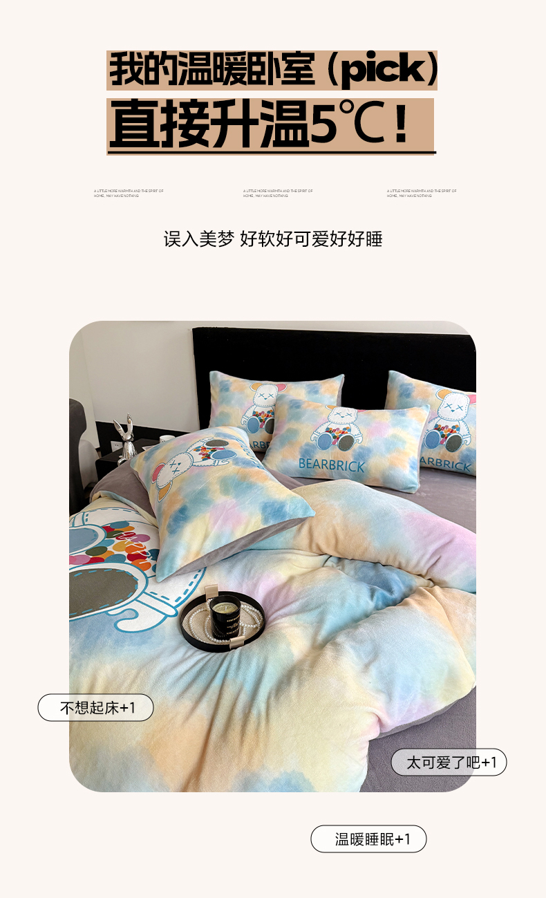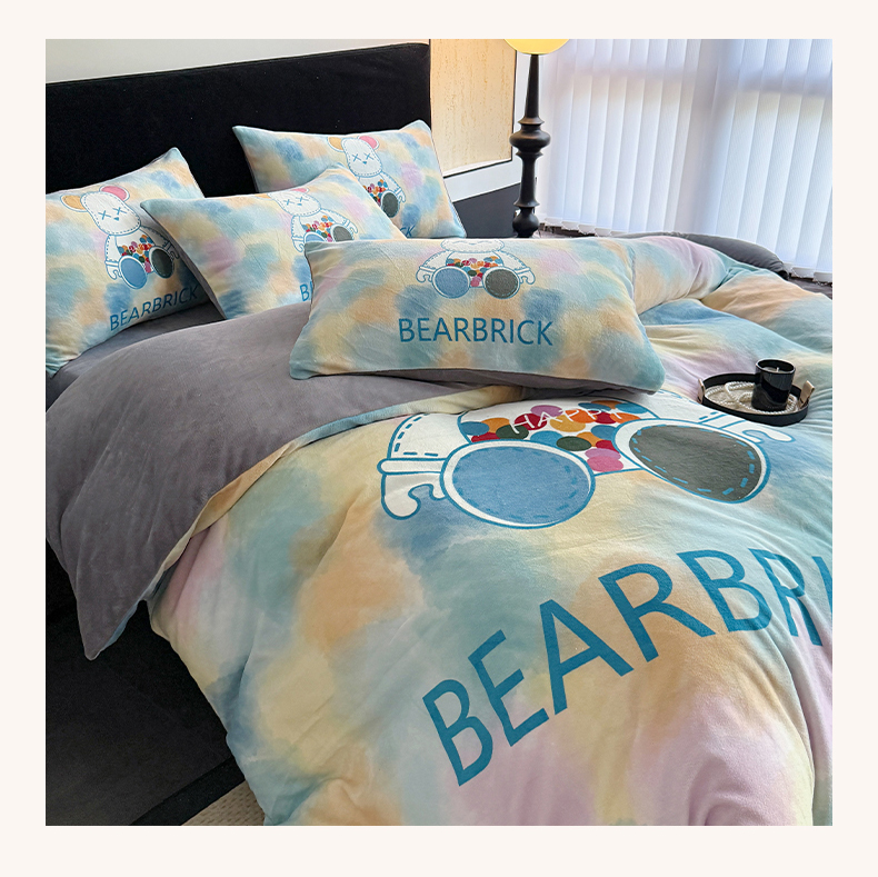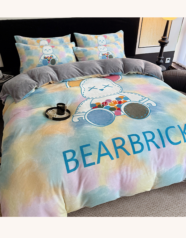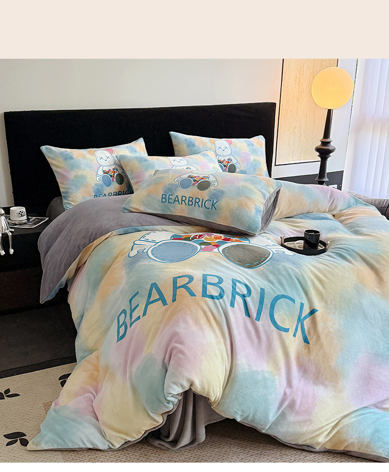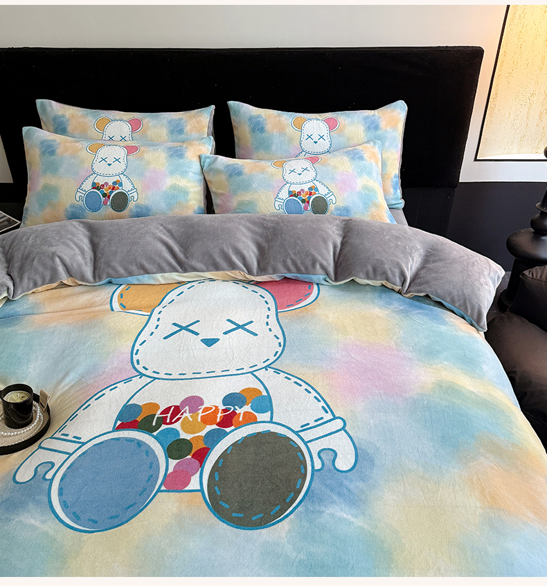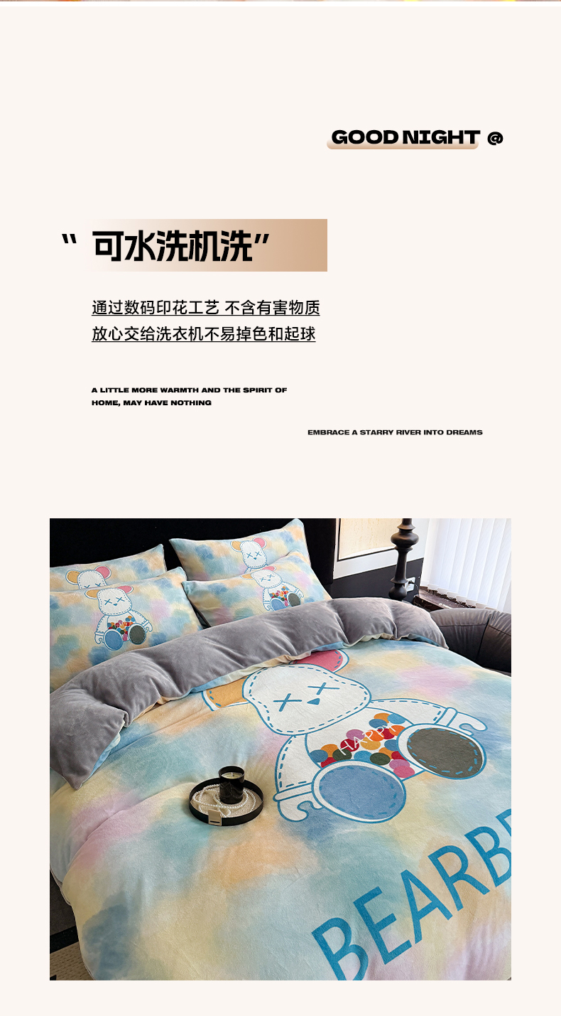 商品名称:摩卡(乐趣) 2025新款牛奶绒大版数码印花四件套 七彩熊