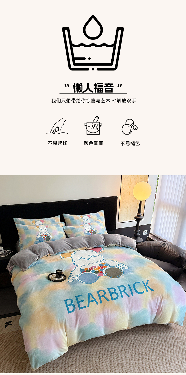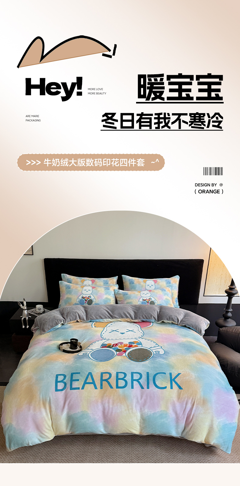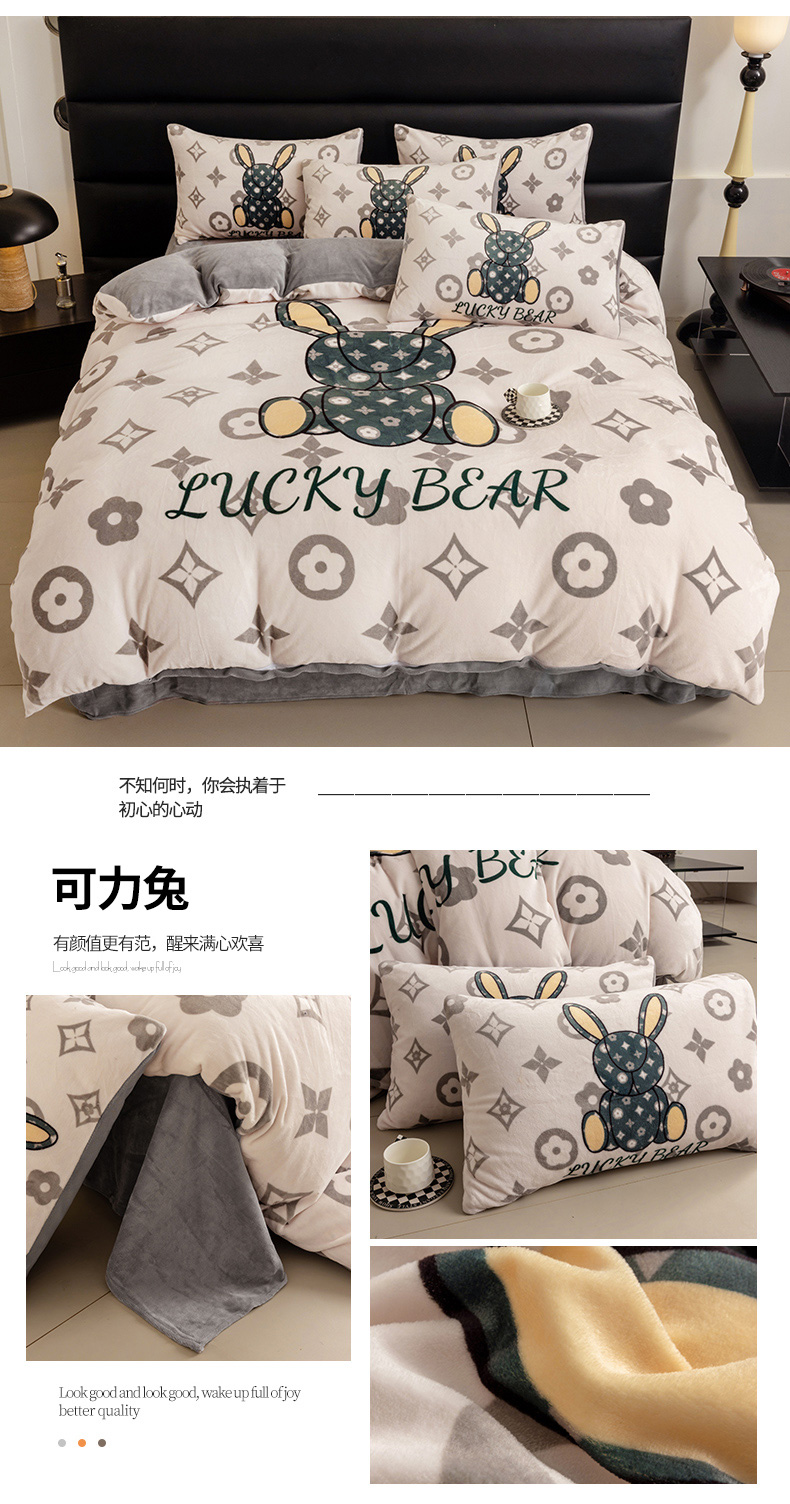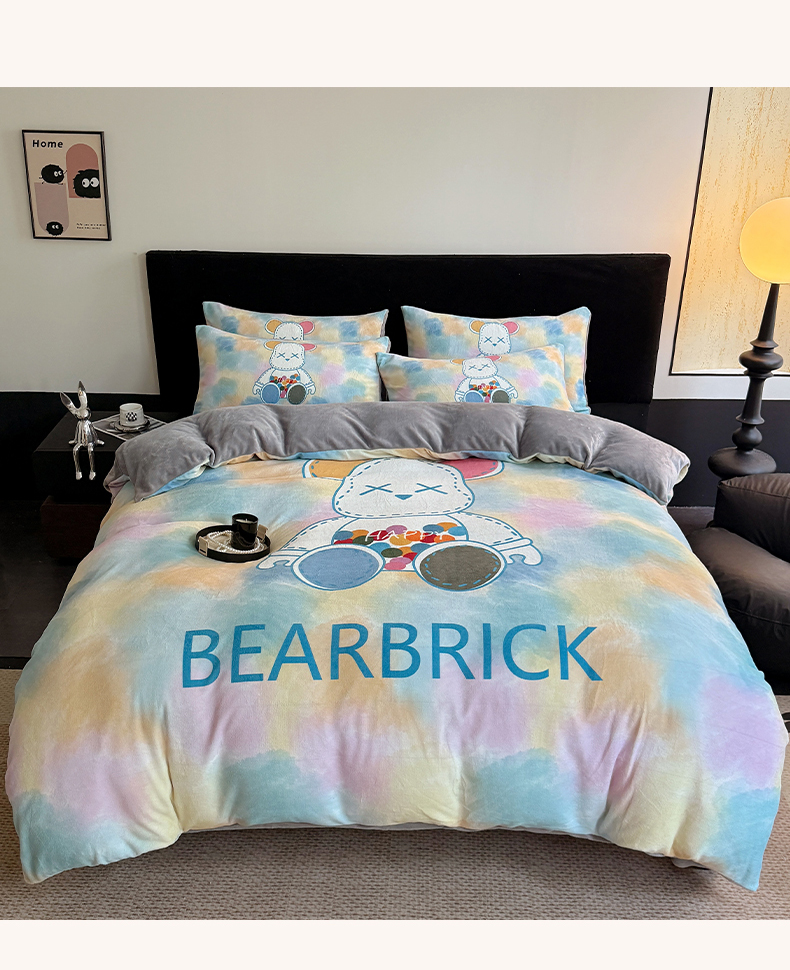 商品名称:摩卡(乐趣) 2025新款牛奶绒大版数码印花四件套 七彩熊