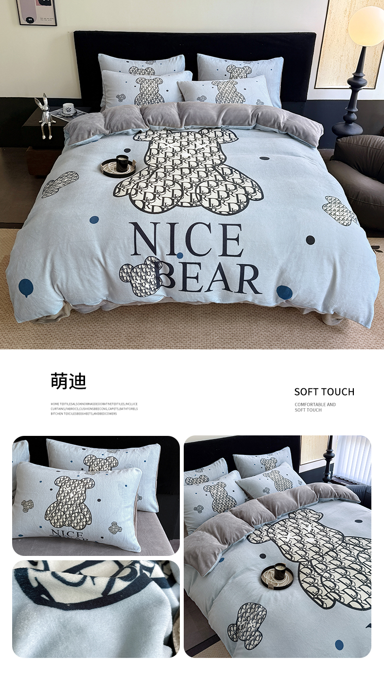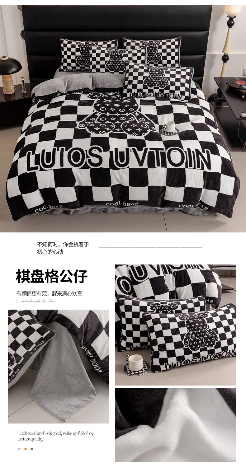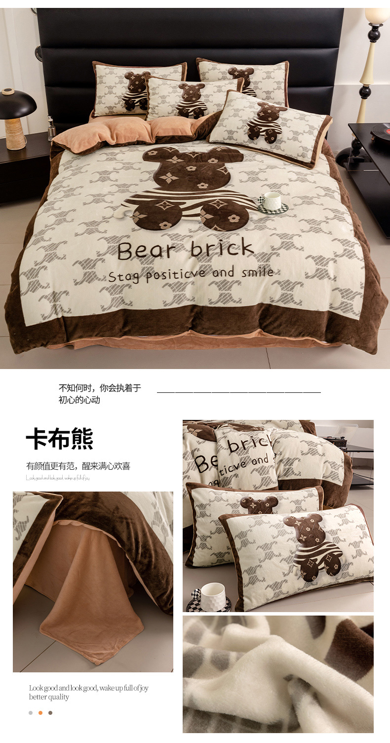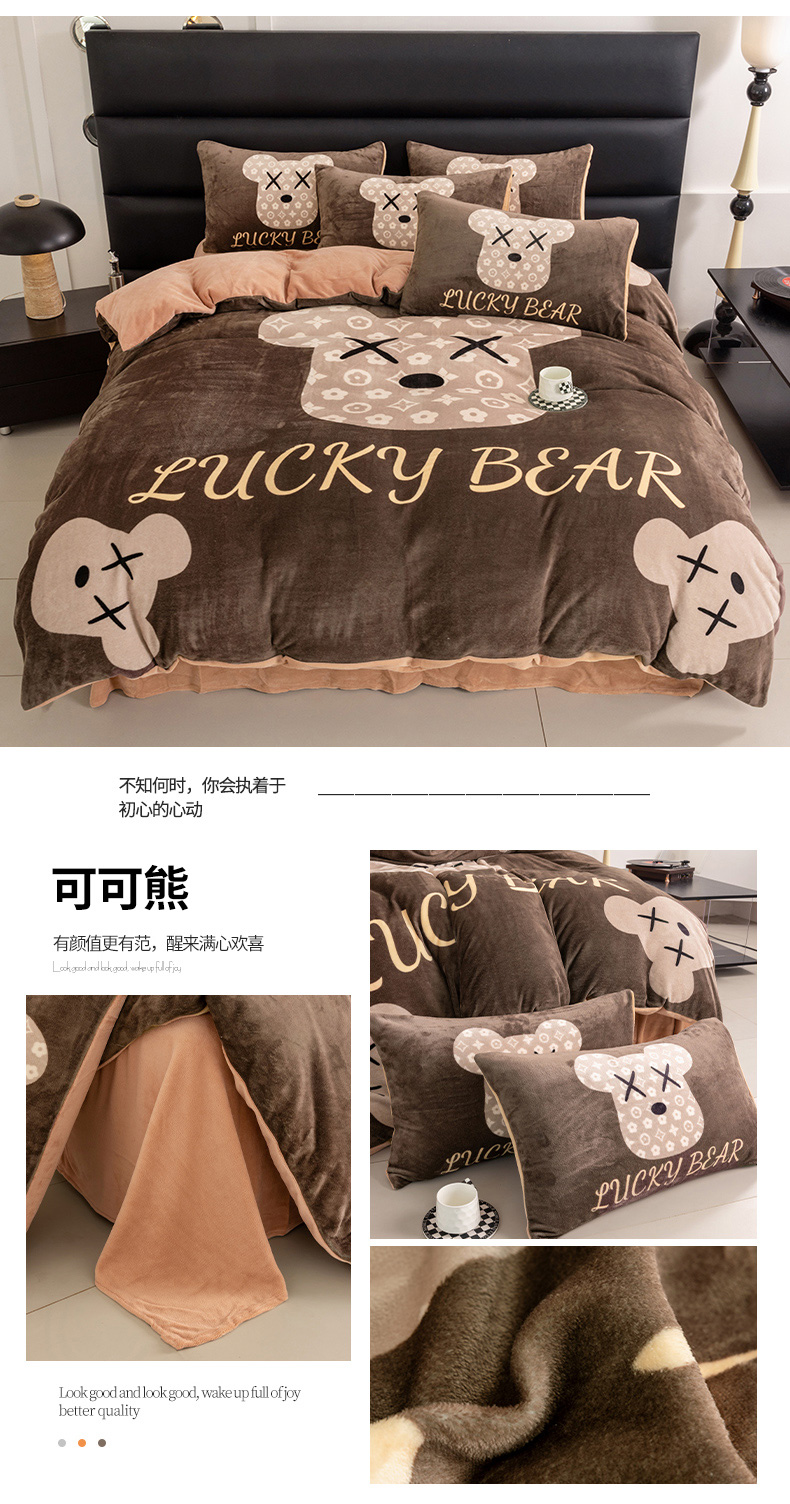 (总)摩卡(乐趣) 2025新款牛奶绒大版数码印花四件套,白香花,芬利熊,黑白V,灰迪,咔芬,卡布熊,可可熊,蓝白格,罗兰粉,萌迪,七彩熊,棋盘格公仔,山茶花,熊头白,熊仔白,熊仔咖