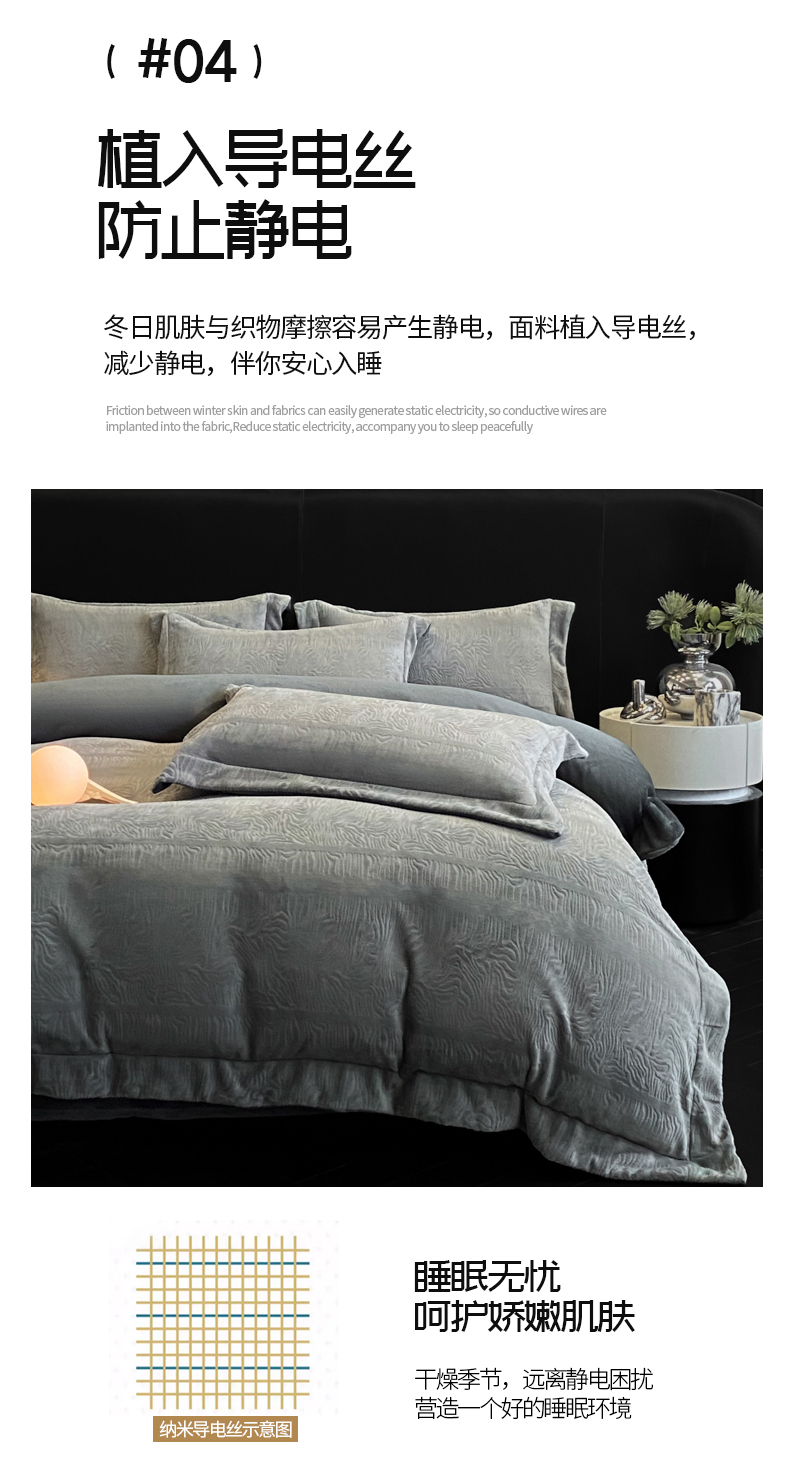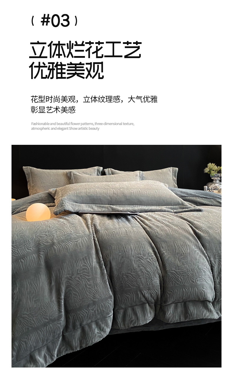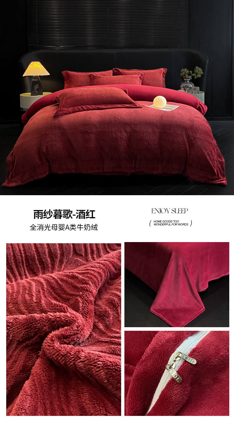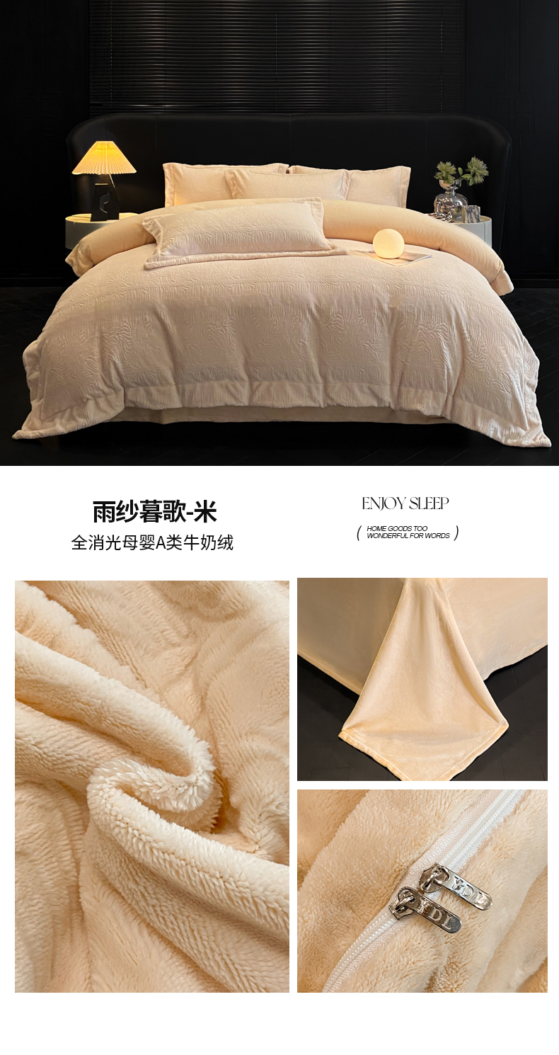 商品名称:(总) 专版花型 2025年新款高克重9.2斤全消光A类烂花牛奶绒四件套-雨纱暮歌直播首选