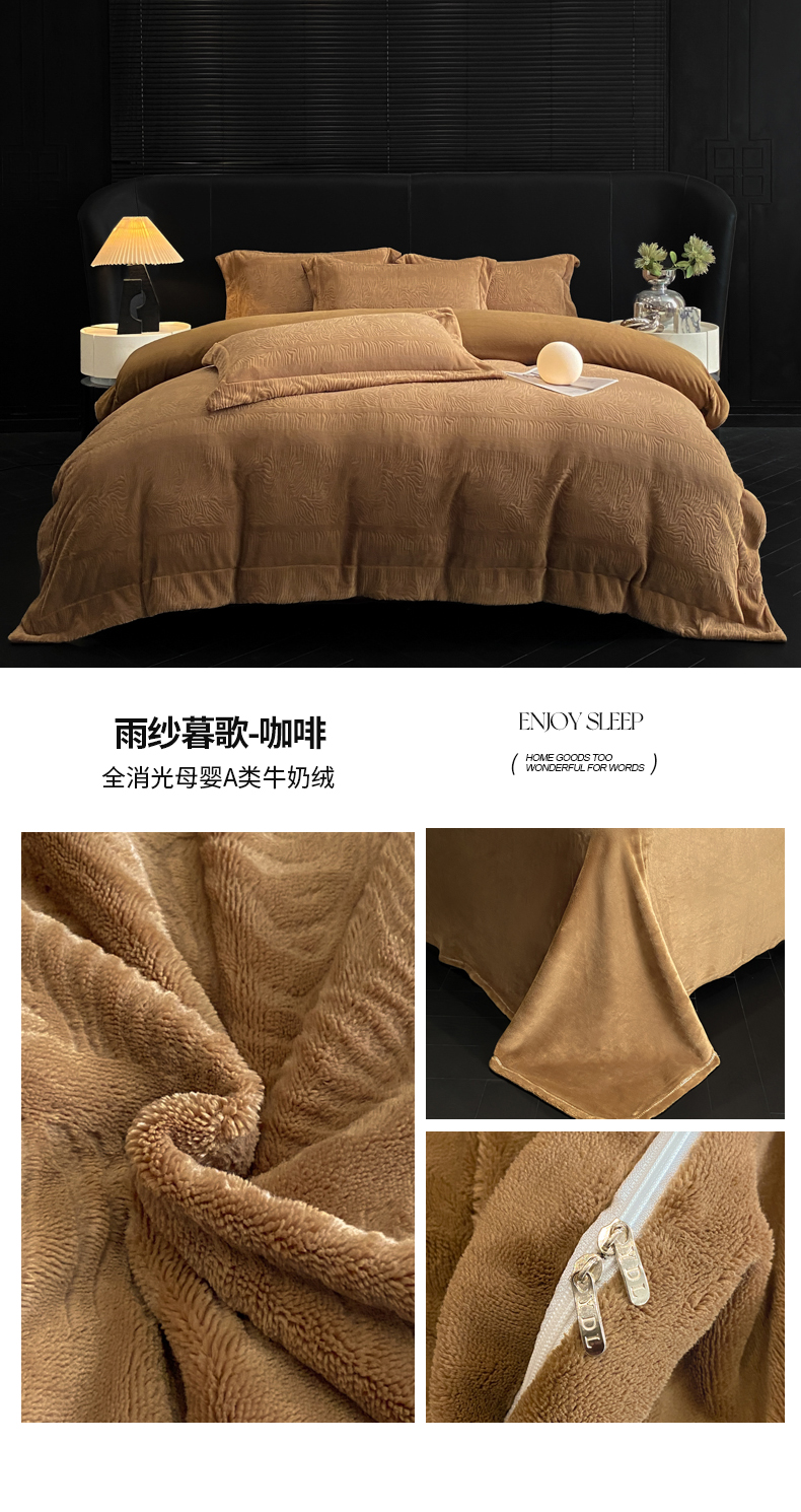 (总) 专版花型 2025年新款高克重9.2斤全消光A类烂花牛奶绒四件套-雨纱暮歌直播首选