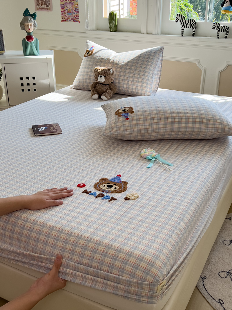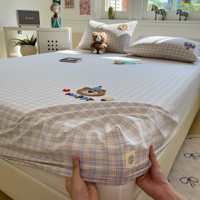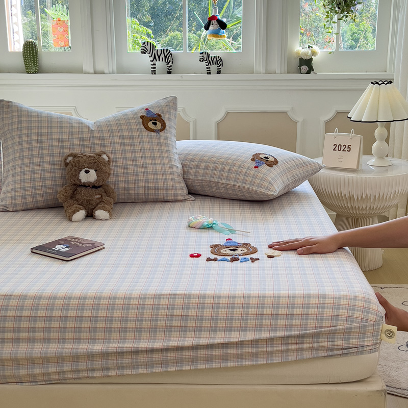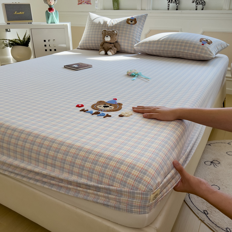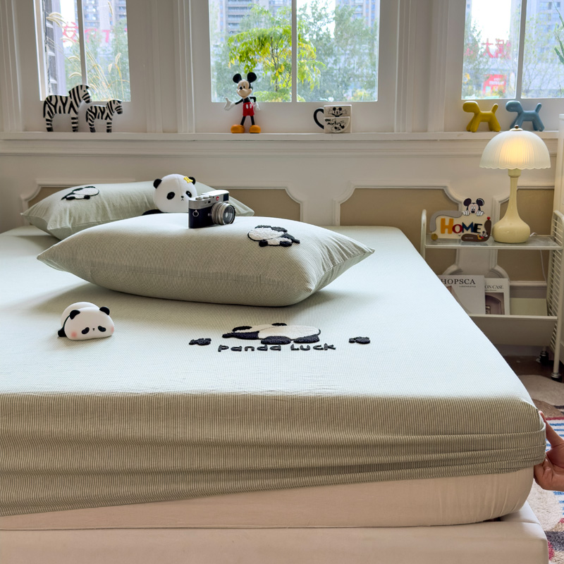 (总)席世家 2025新款绣花凉感床笠(控价198 218),格子熊猫,格子熊猫