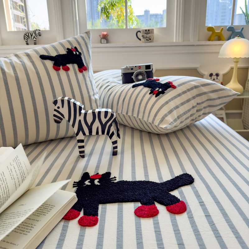 席世家 2025新款全棉纯棉水洗棉床笠单床笠 水洗棉-小黑猫