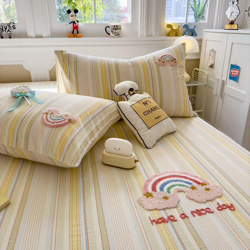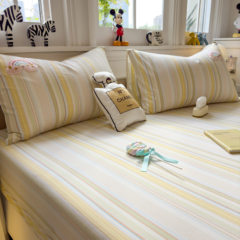 (总)席世家 2025春夏新款全棉纯棉老粗布印花床笠凉席席子,宝贝兔,嘟嘟熊,卡皮拉,苹果树,幸运帽,熊猫与竹
