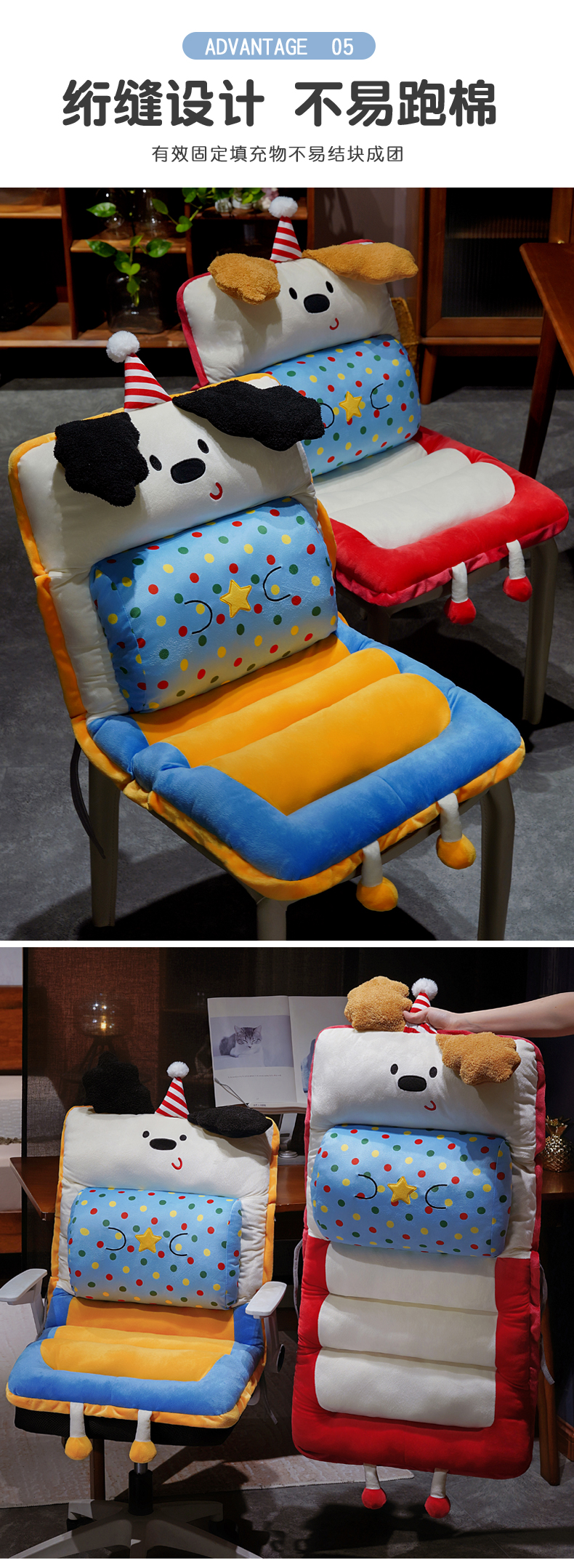 当前位置: 91家纺网 > 商品网购 > 居家布艺 > 坐垫/椅垫/沙发垫 > 椅垫 > 仟亿莱 2025新款翘耳小狗护腰横条连体坐垫 组合图仅供展示-不可下单