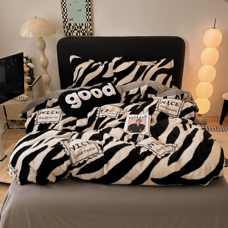 (总)一比一家纺 2025新款加厚保暖兔毛绒兔兔绒四件套-豹纹系列,豹纹-粉条,豹纹-灰条,豹纹-咖条,豹纹-绿条,豹纹-紫条
