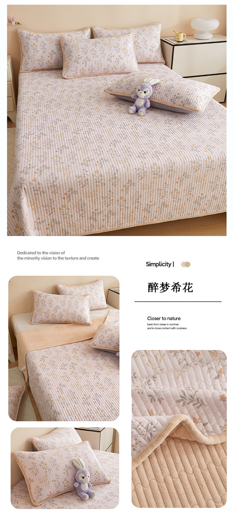 • 91家纺网 家纺一手货源 找家纺 金艾草 2025新款A版全棉印花B版加厚牛奶绒单件棉加绒床盖三件套榻榻米垫 浪漫小屋
