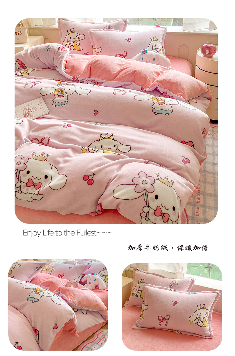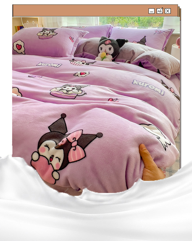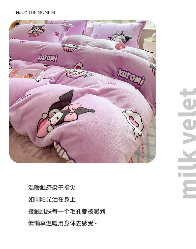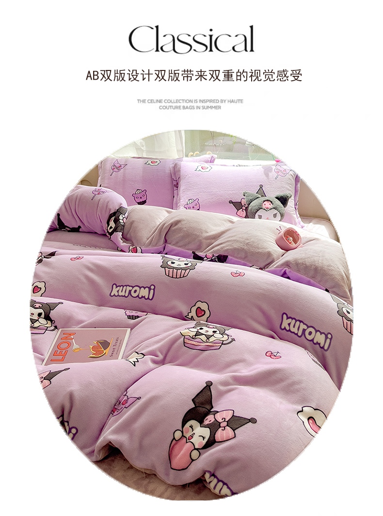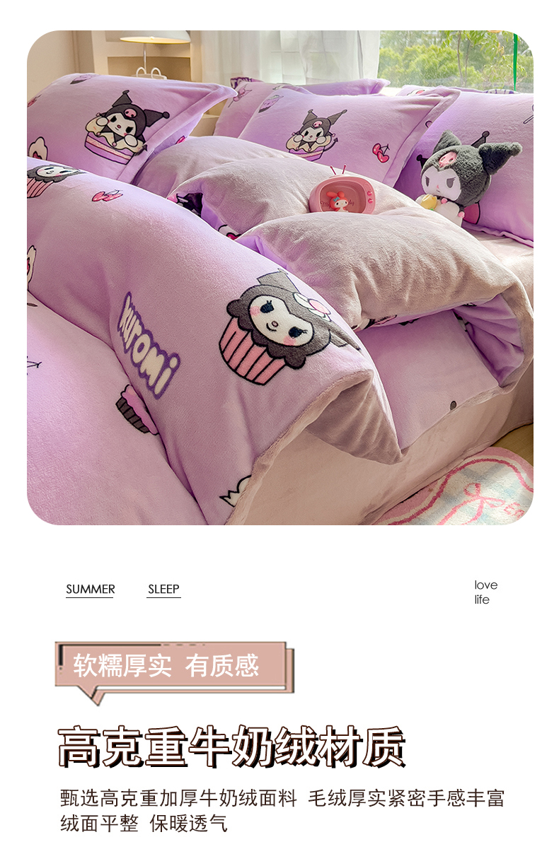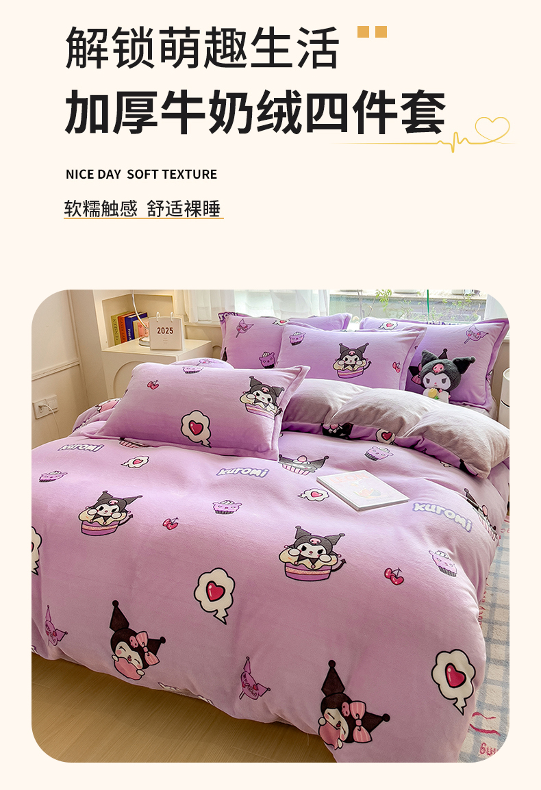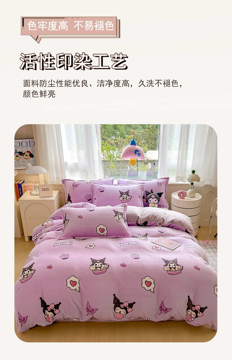 当前位置: 91家纺网 > 商品网购 > 床品套件 > 四件套 > 牛奶绒四件套 > 云恋家纺 2025新款亲肤舒适卡通牛奶绒活性印染四件套 爱心库洛米-紫色