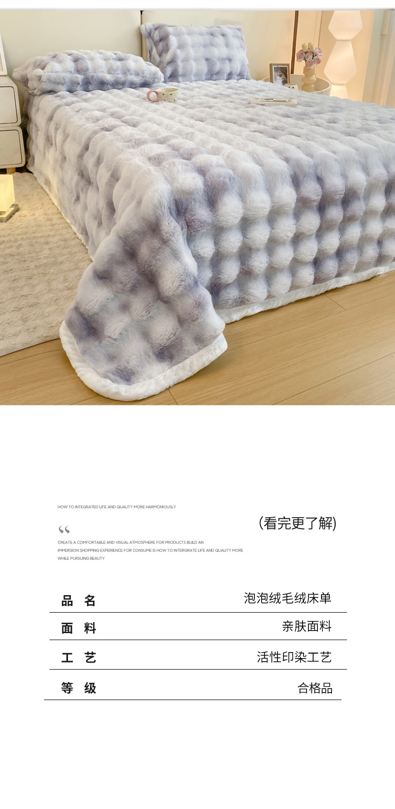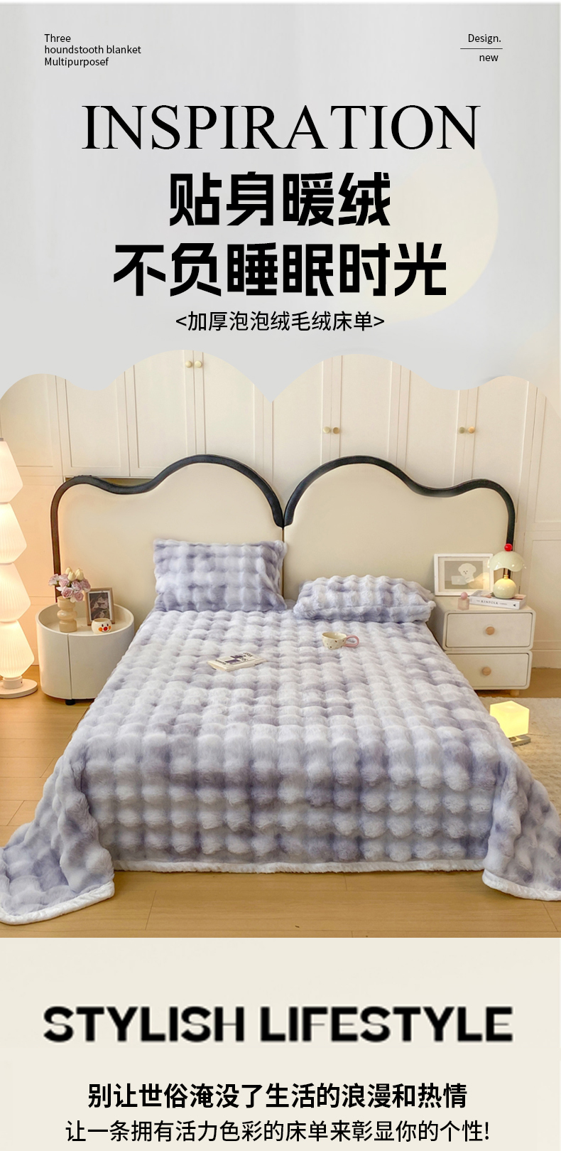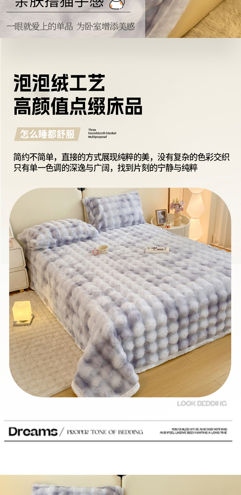 (总)麒东家纺 2025新款泡泡绒兔毛绒床单,流彩粉,深灰,咖色,米白,天蓝,流彩蓝,流彩绿,流彩紫