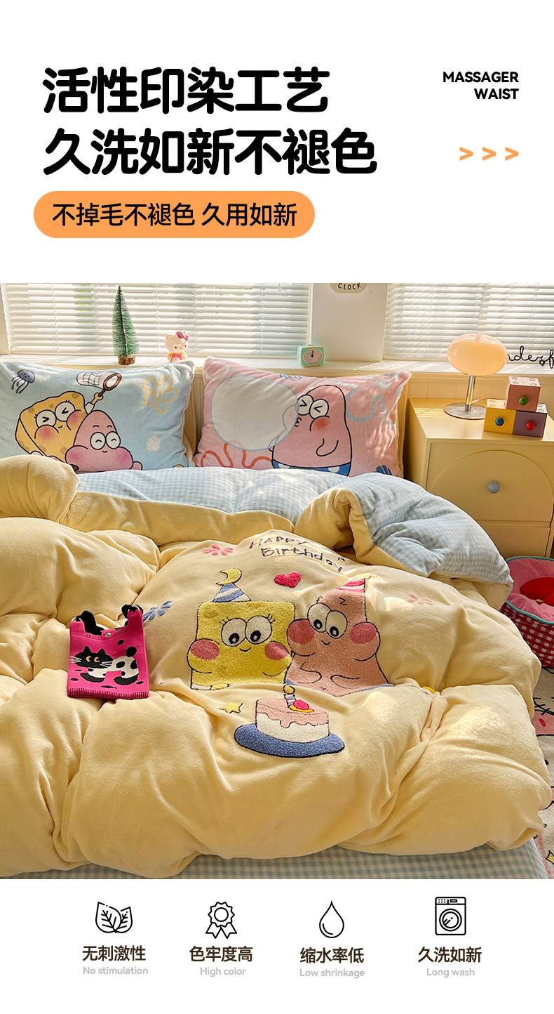 当前位置: 91家纺网 > 商品网购 > 床品套件 > 四件套 > 牛奶绒四件套 > 优选 2025新款高克重200g牛奶绒数码印花毛巾绣卡通四件套直播爆款电商爆款 生日派对