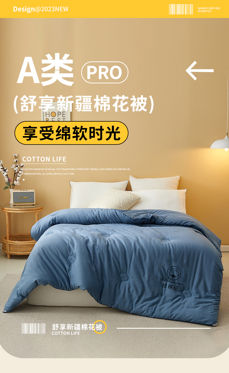 • 91家纺网 家纺一手货源 找家纺 美丽折家纺 2025新款舒享新疆棉花被冬被春秋被被芯 蓝色