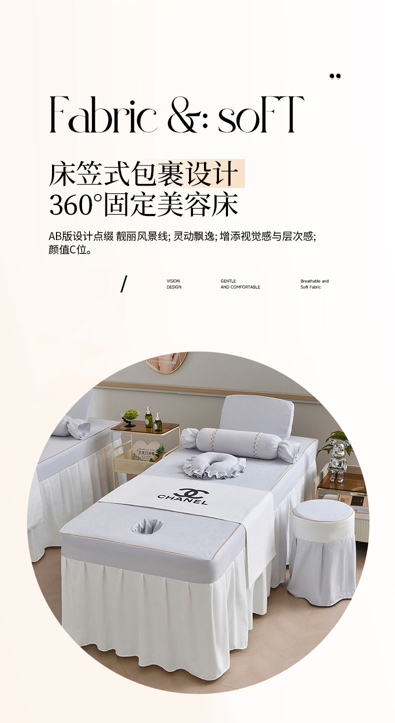 莉人坊美容床罩批发 2025新款亲肤舒适汉锦棉美容床罩系列美容床罩-丽源 丽源-浅灰