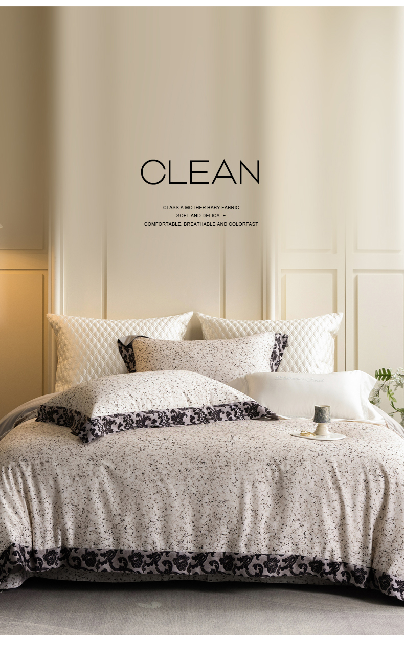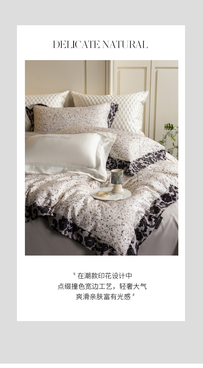 黑白森林2024款 50X50S高支天丝棉数码印花四件套天丝全棉,柚凝咖,柚凝绿,若芙灰,若芙咖