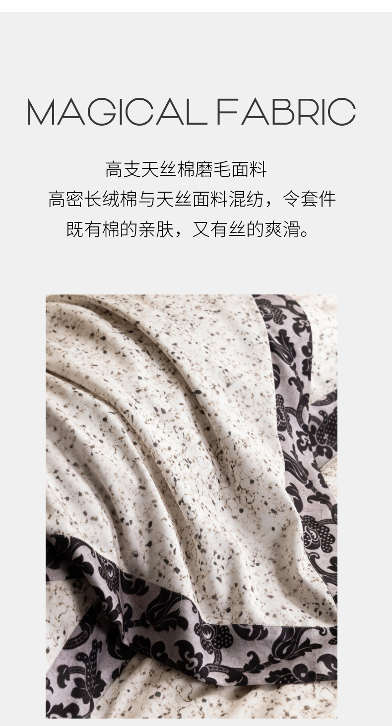 商品名称:黑白森林 2025新款高支天丝棉磨毛数码印花四件套 洛可可-灰
