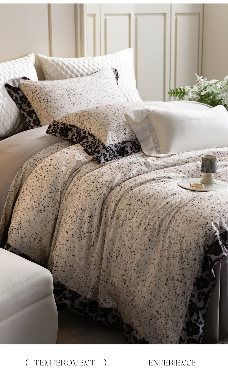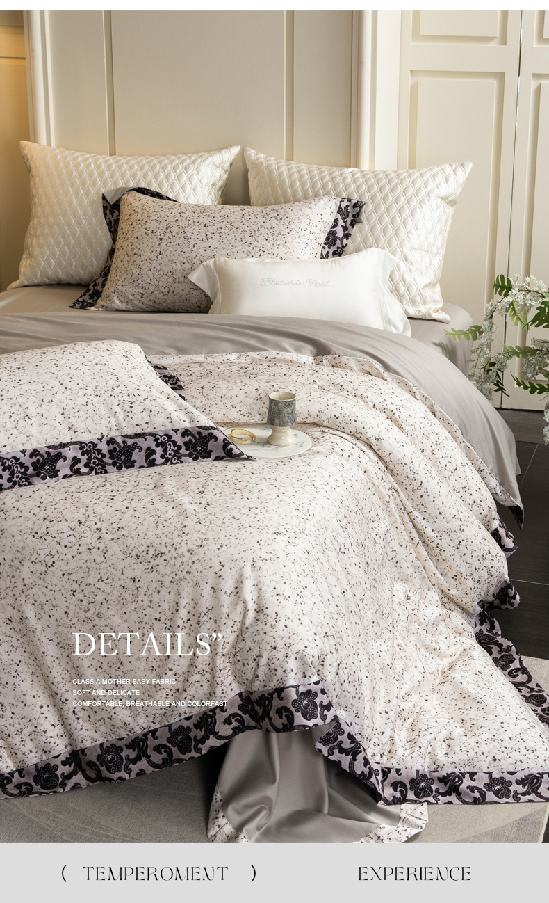 黑白森林 2025新款高支天丝棉磨毛数码印花四件套 洛可可-灰