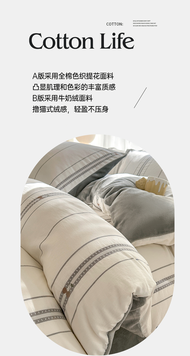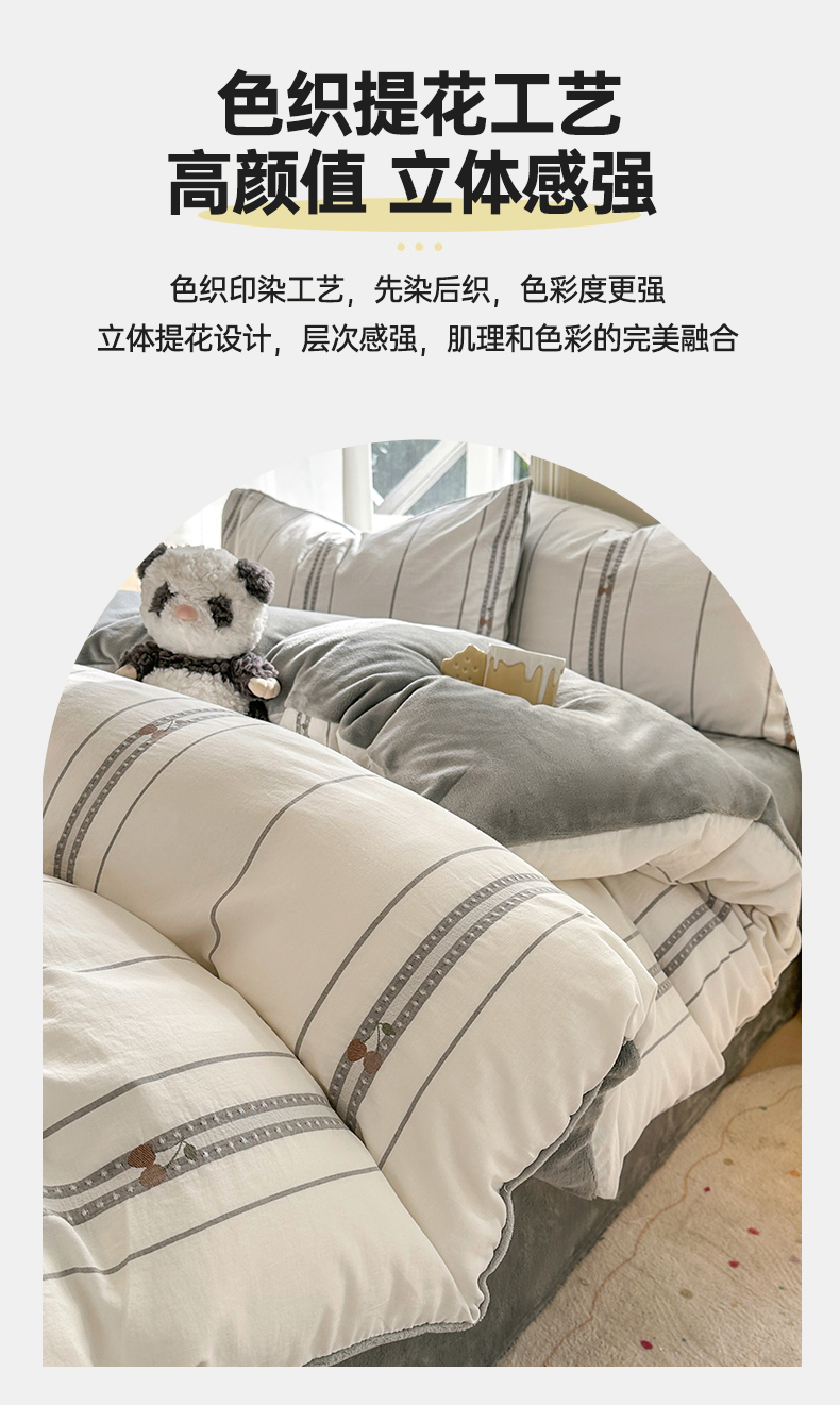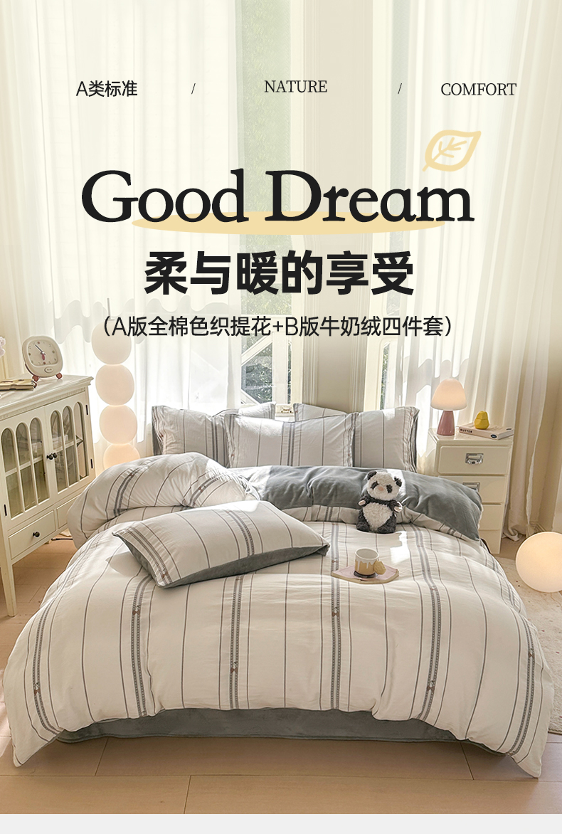 当前位置: 91家纺网 > 商品网购 > 床品套件 > 四件套 > 牛奶绒四件套 > 灰鲸 2025新款A版全棉色织提花B版牛奶绒四件套系列 棉+绒-樱诺灰