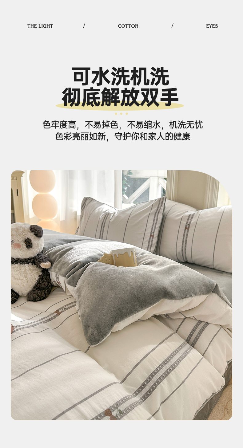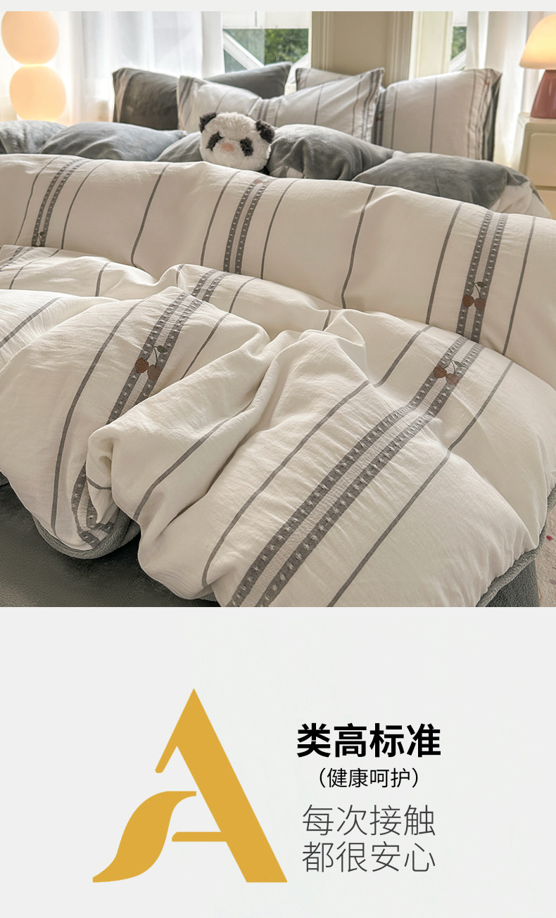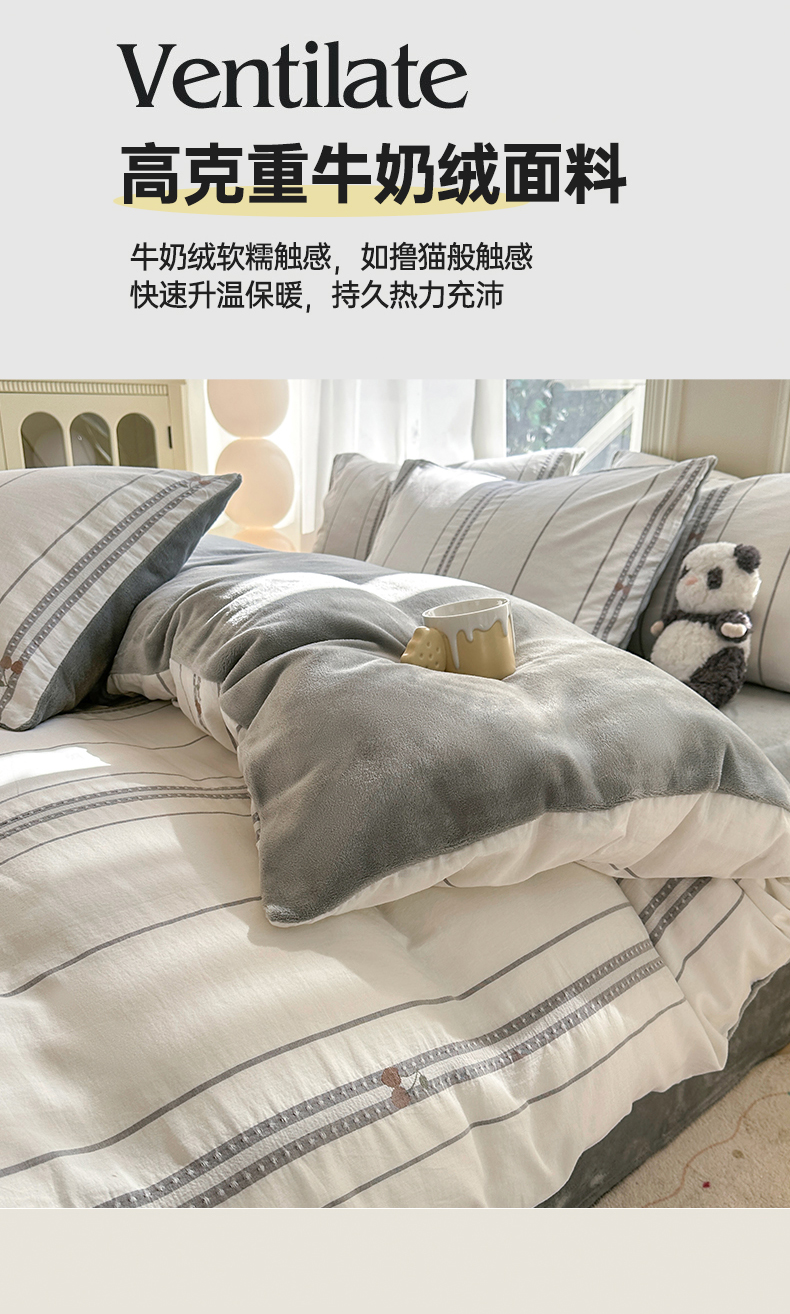 当前位置: 91家纺网 > 商品网购 > 床品套件 > 四件套 > 牛奶绒四件套 > 灰鲸 2025新款A版全棉色织提花B版牛奶绒四件套系列 棉+绒-樱诺灰