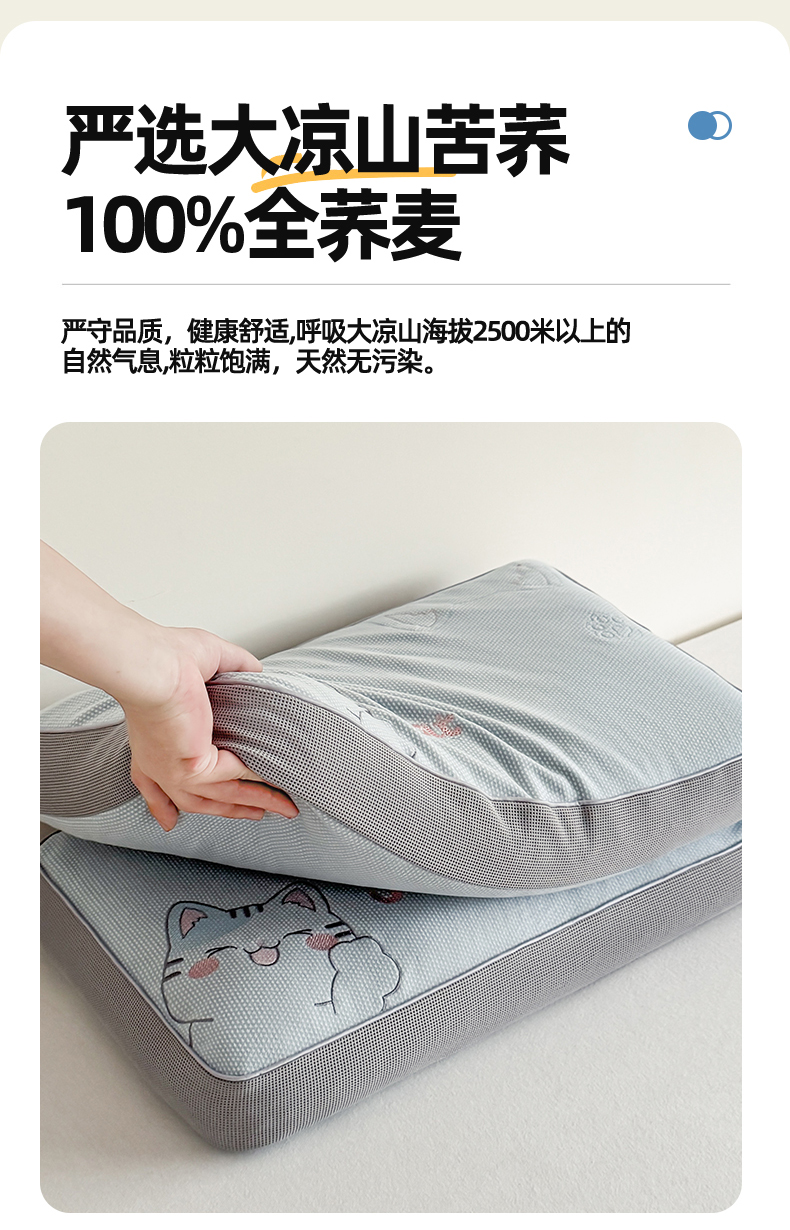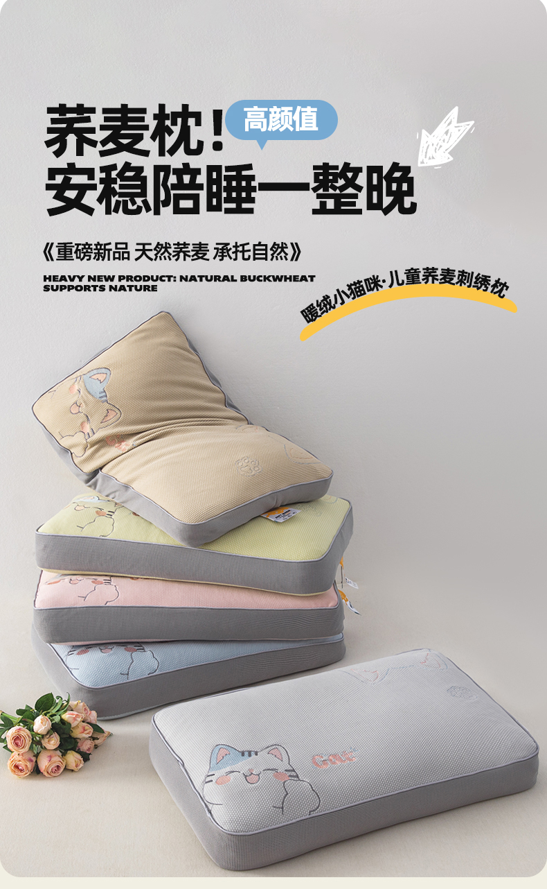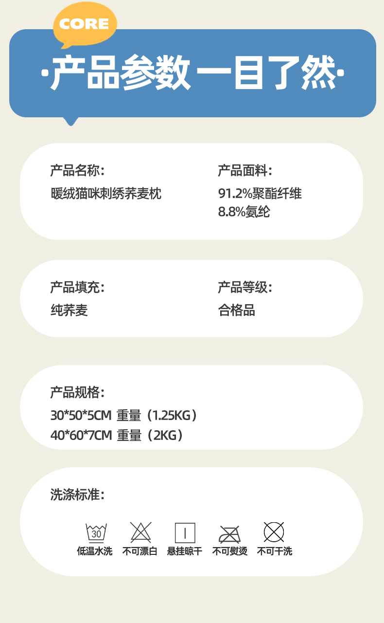 商品名称:(总)麦肯锡 2025新款暖绒猫咪刺绣荞麦枕枕头枕芯