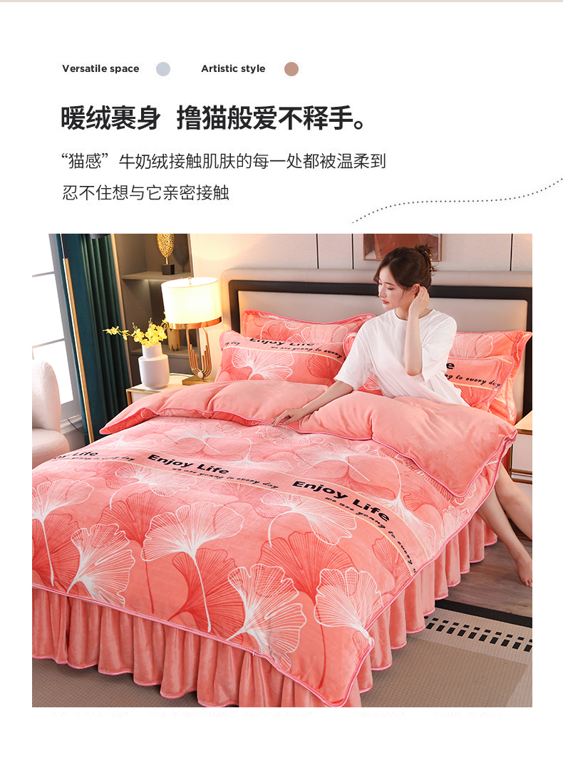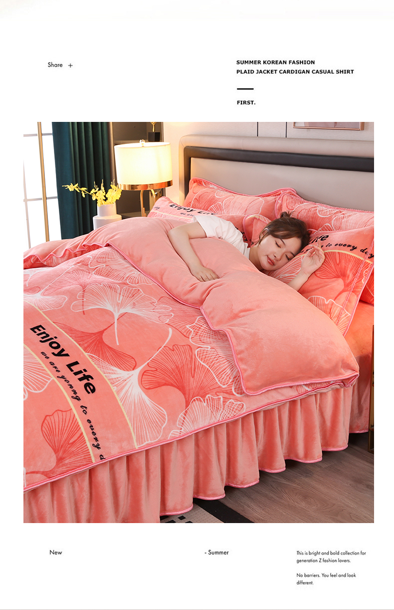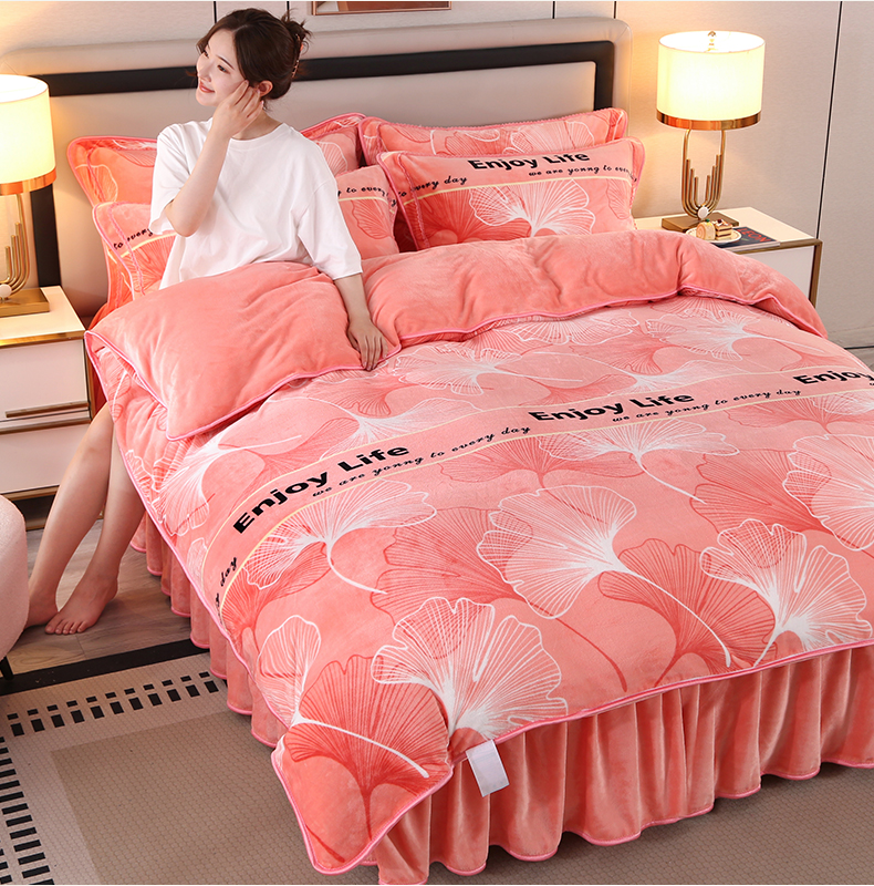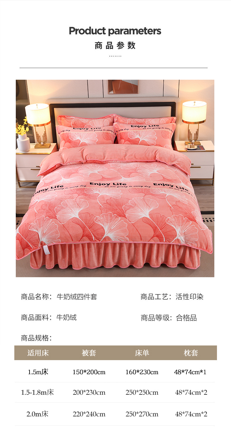 商品名称:栩裕纺织 2025新款230高克重牛奶绒法莱绒印花四件套-直播热款8斤半 银杏满地粉