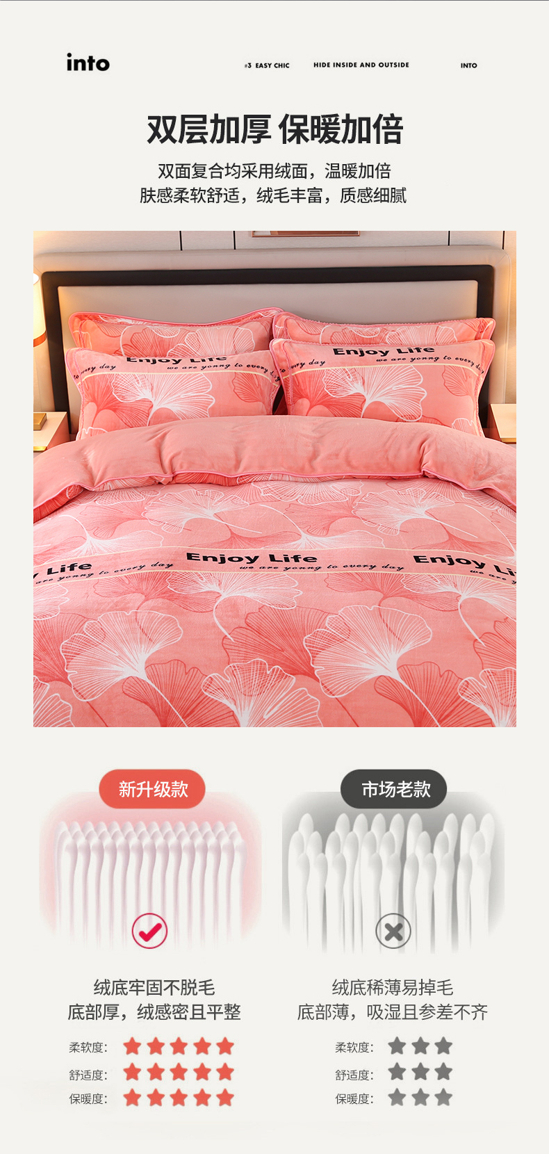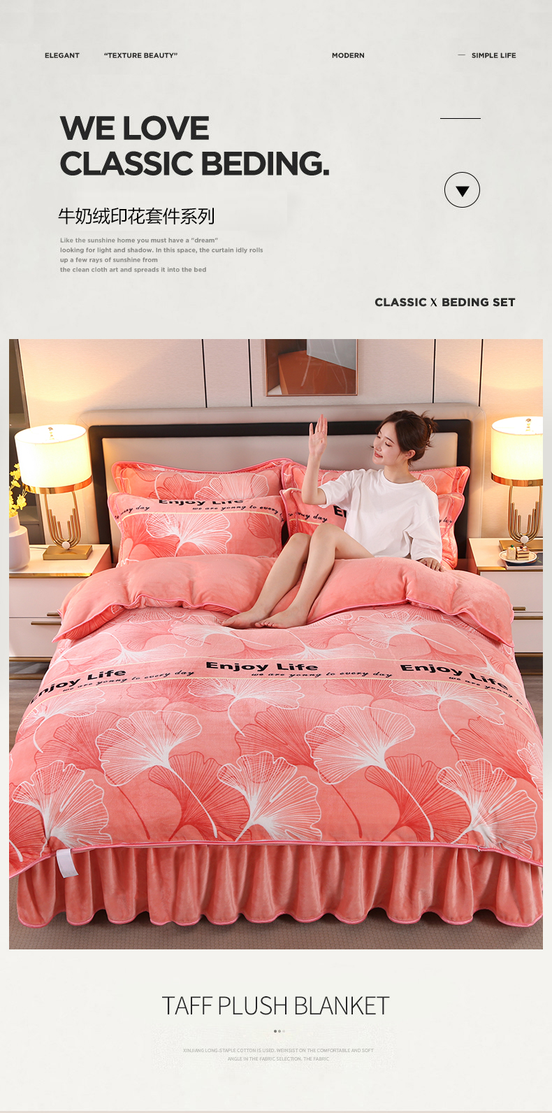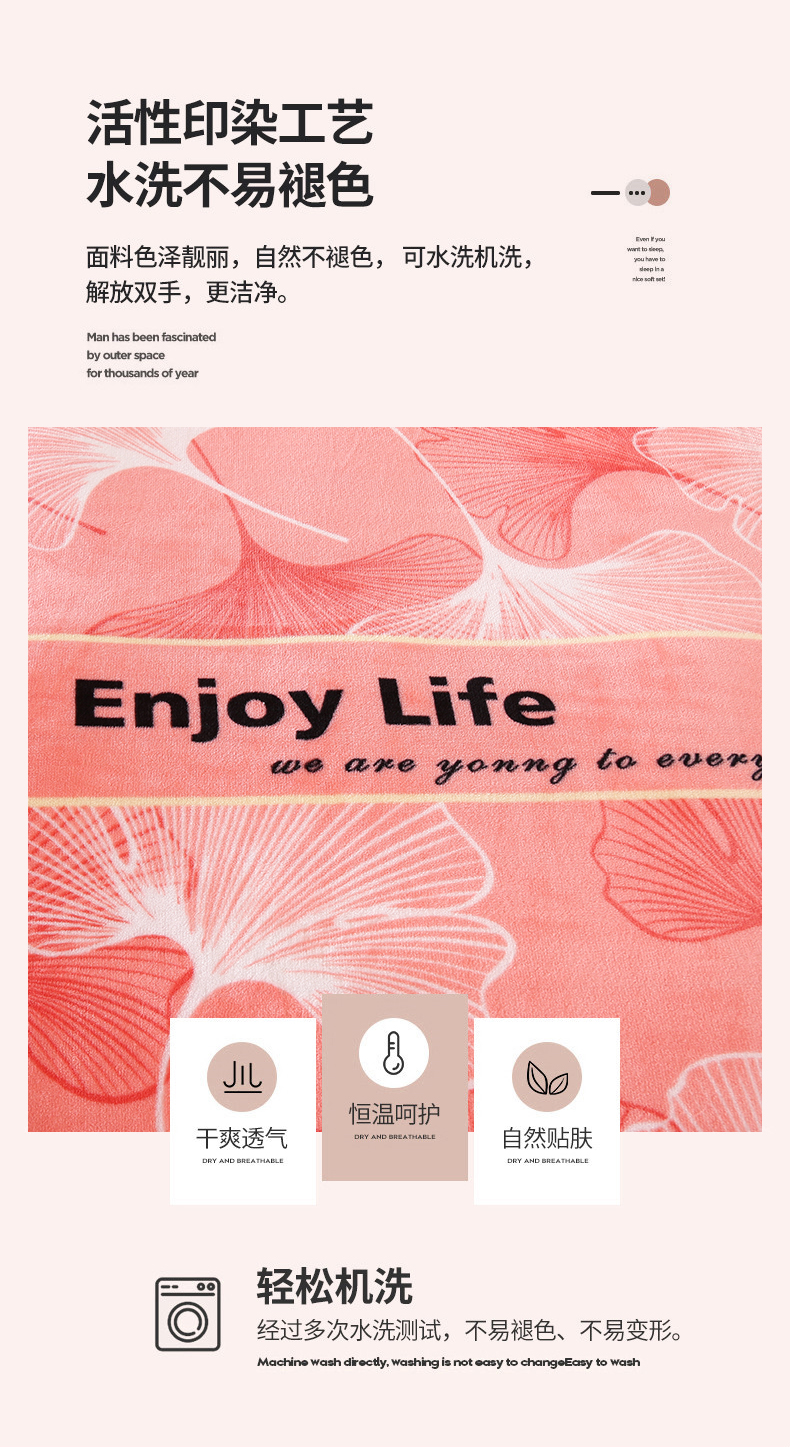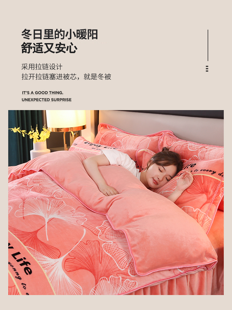商品名称:栩裕纺织 2025新款230高克重牛奶绒法莱绒印花四件套-直播热款8斤半 银杏满地粉