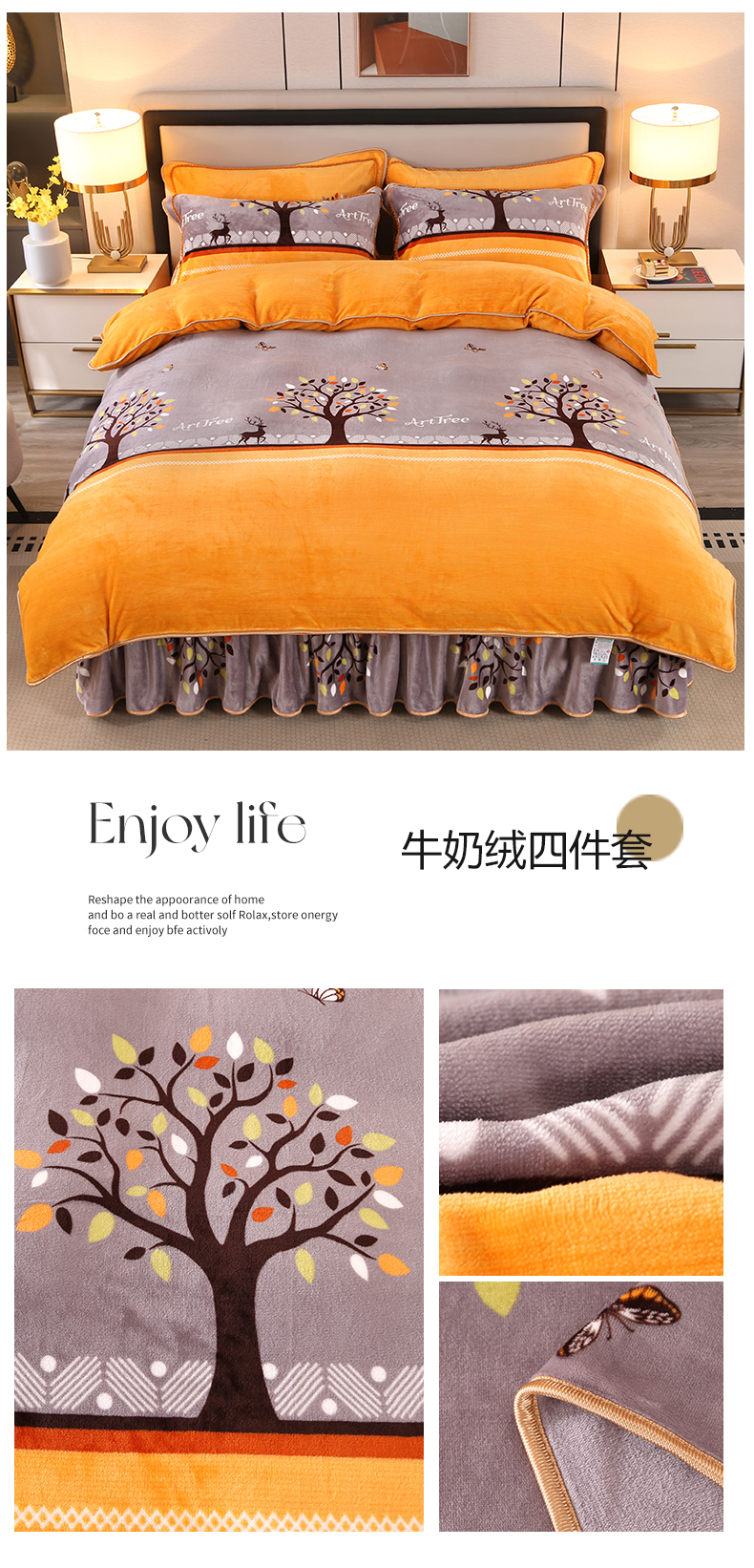 商品名称:栩裕纺织 2025新款230高克重牛奶绒法莱绒印花四件套-直播热款8斤半 快乐小鹿