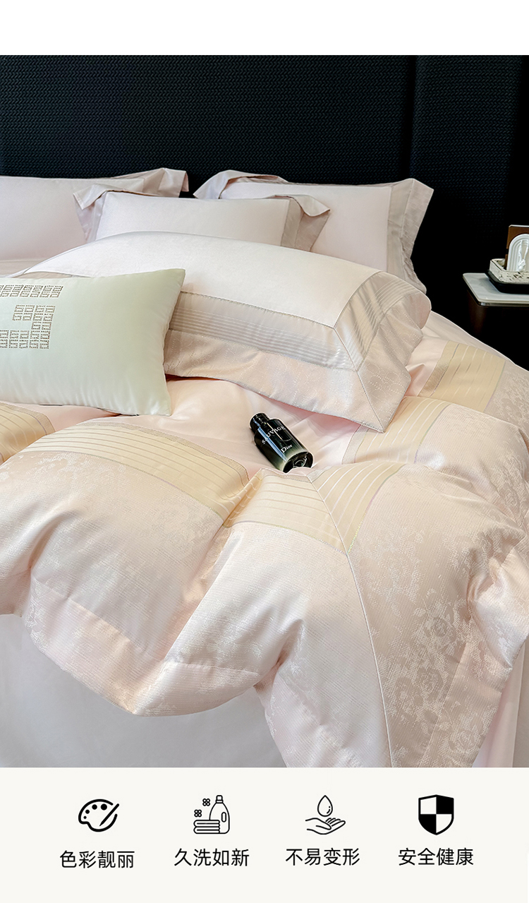 当前位置: 91家纺网 > 商品网购 > 床品套件 > 四件套 > 贡缎全棉四件套 > 高档礼盒装彩金色织提花+50*50S贡缎长绒棉纯棉加厚磨毛四件套100%全棉 桃花粉-玛奇朵-彩金色织提花纯棉磨毛