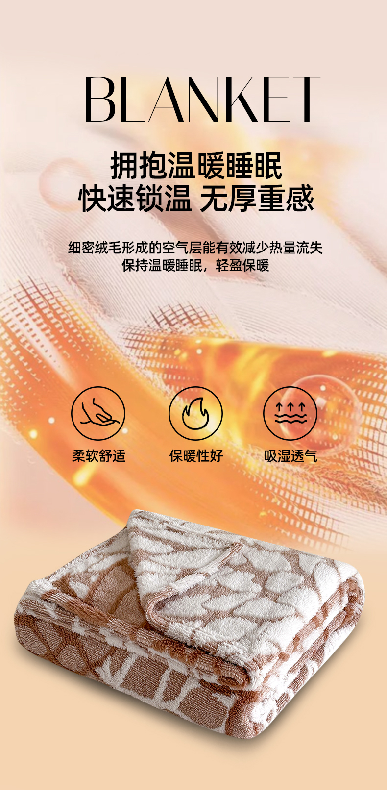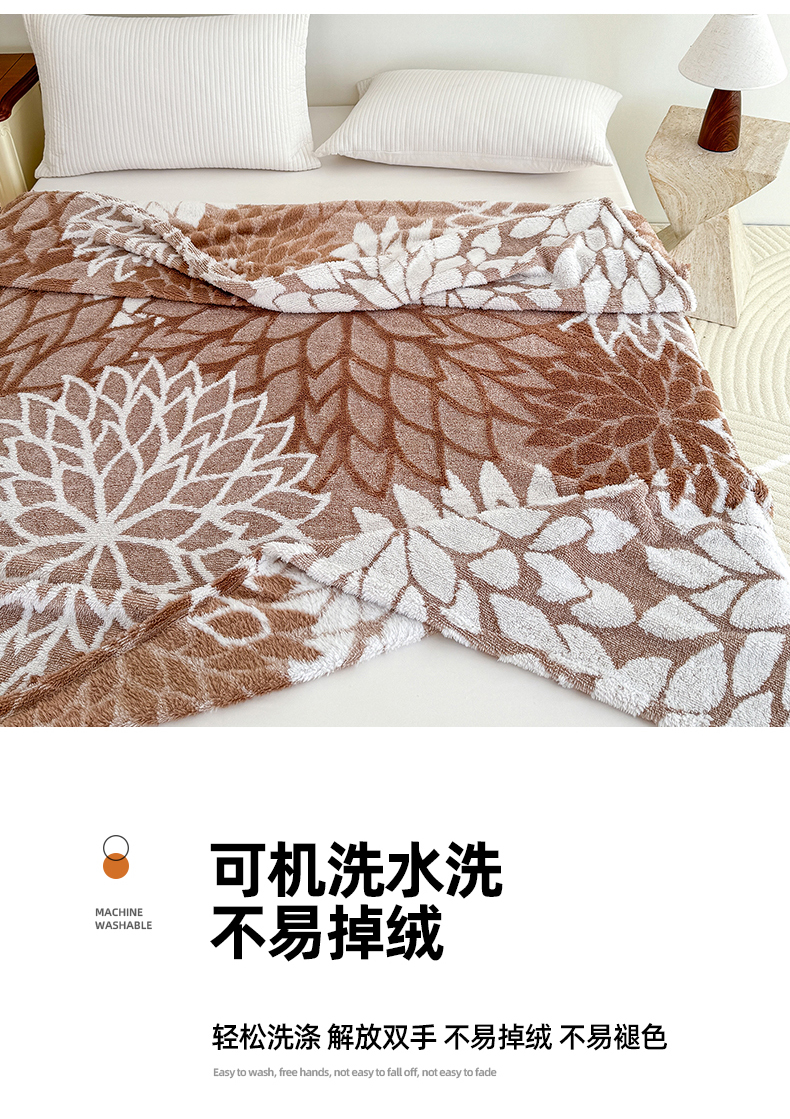 商品名称:枋梢家纺 2025新款万花筒阳离子提花镂空塔芙绒保暖午睡双层毛毯办公室盖毯 万花筒-咖色