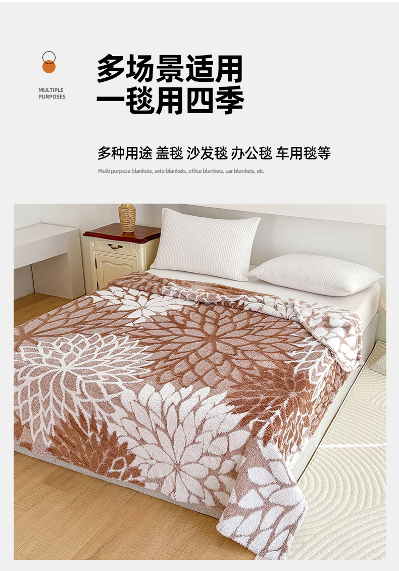 (总)枋梢家纺 2025新款亮丝兔毛绒兔毛提花暖居花漾羊羔绒 双层加厚保暖盖毯 居家午睡保暖毯,花漾-粉色,花漾-咖色,花漾-绿色,花漾-米黄,花漾-浅灰,花漾-深灰,花漾-驼色,花漾-紫色,包装